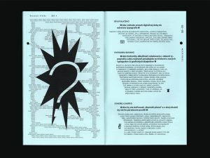 druhej strane, projektom odzrkadľujem aj seba. Na úplnom začiatku som si totiž kládla otázku, čo ma baví viac, či je to webdizajn, alebo tlačené sadzby a knihy. Zistila som, že ma priťahuje jedno aj druhé. Okrem toho ako dizajnérka reflektujem, že doba napreduje a že všetko sa presúva do digitálu. Tak som si jedného dňa povedala, že fyzický a digitálny svet môžem prepojiť. Rozhodla som sa k tomu pristúpiť tak, že prinavrátim tvorbu fyzického média a do tlačenej formy prepojím digitálno-interaktívne prvky.