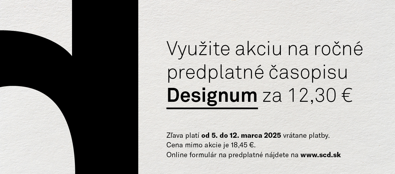 Len od 5. do 12. marca 2025 si môžete predplatiť Designum za výnimočnú cenu 12,30 € (namiesto 18,45 €)! Objednávku je nutné v tomto termíne aj uhradiť, inak nebude akceptovaná.