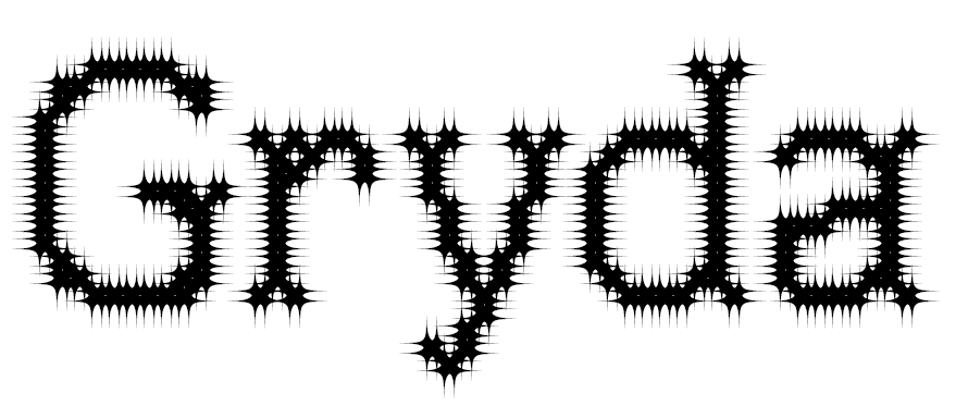 Gryda je variabilné pixelovo alebo skôr spórovo založené písmo. Je to živý organizmus fungujúci v rámci šiestich osí: osi Spreadium, ktorá modifikuje mieru šírenia, osi Colonia, ktorá ovplyvňuje rovnomerný rast spór, osi Hyphaflex, ktorá určuje sklon spór, osi Rotundula, ktorá mení rotáciu spór, osi Expandula, ktorá formuje horizontálny rast spór, a napokon osi Elongata, ktorá modifikuje vertikálny rast spór. Humidus gridus, vividus scriptus.