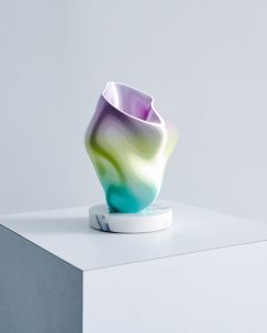 Niečo, o čo sa snažím, je, aby sa ľudia s objektmi, ktoré tvorím, dokázali emočne stotožniť. Napríklad táto karafa… (Kickie ukazuje na karafu Boon, ktorú vytvorila pre Puik design a ktorá stojí na stolíku medzi nami) …má funkciu, má ergonomický tvar, formu, farbu, ale celé spolu by to malo vyvolávať v ľuďoch emóciu – aby ten objekt mal zmysel, aby bol súčasný, pre dobu, v ktorej žijeme. A aj preto, že keď máš nejakú vec rád, tak ju tak rýchlo nevyhodíš, pokiaľ sa nepokazí.