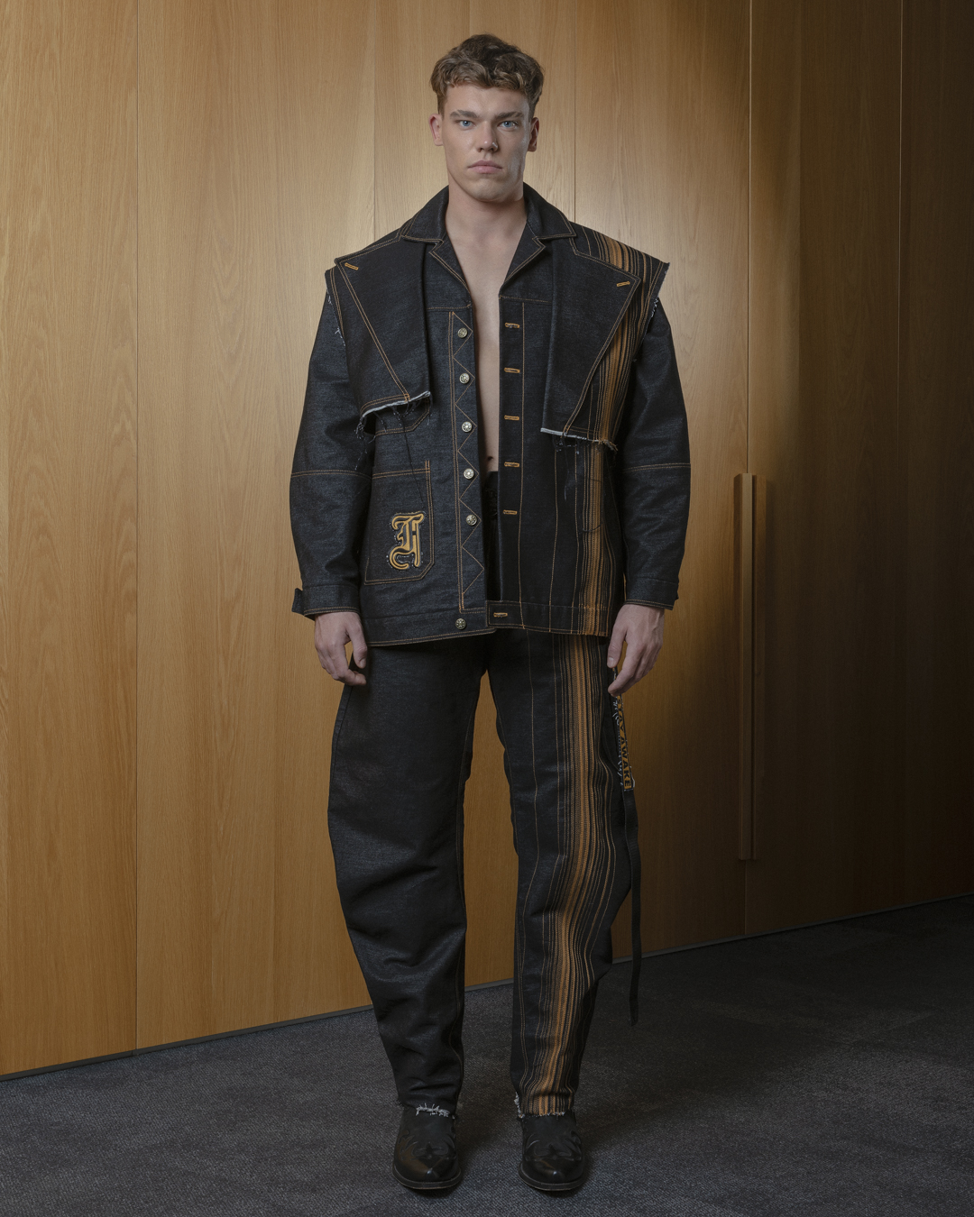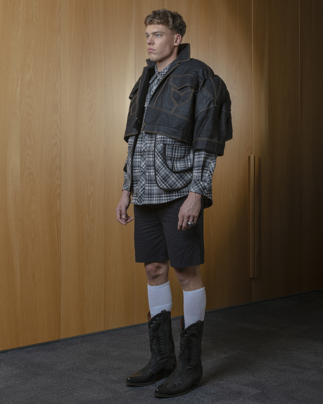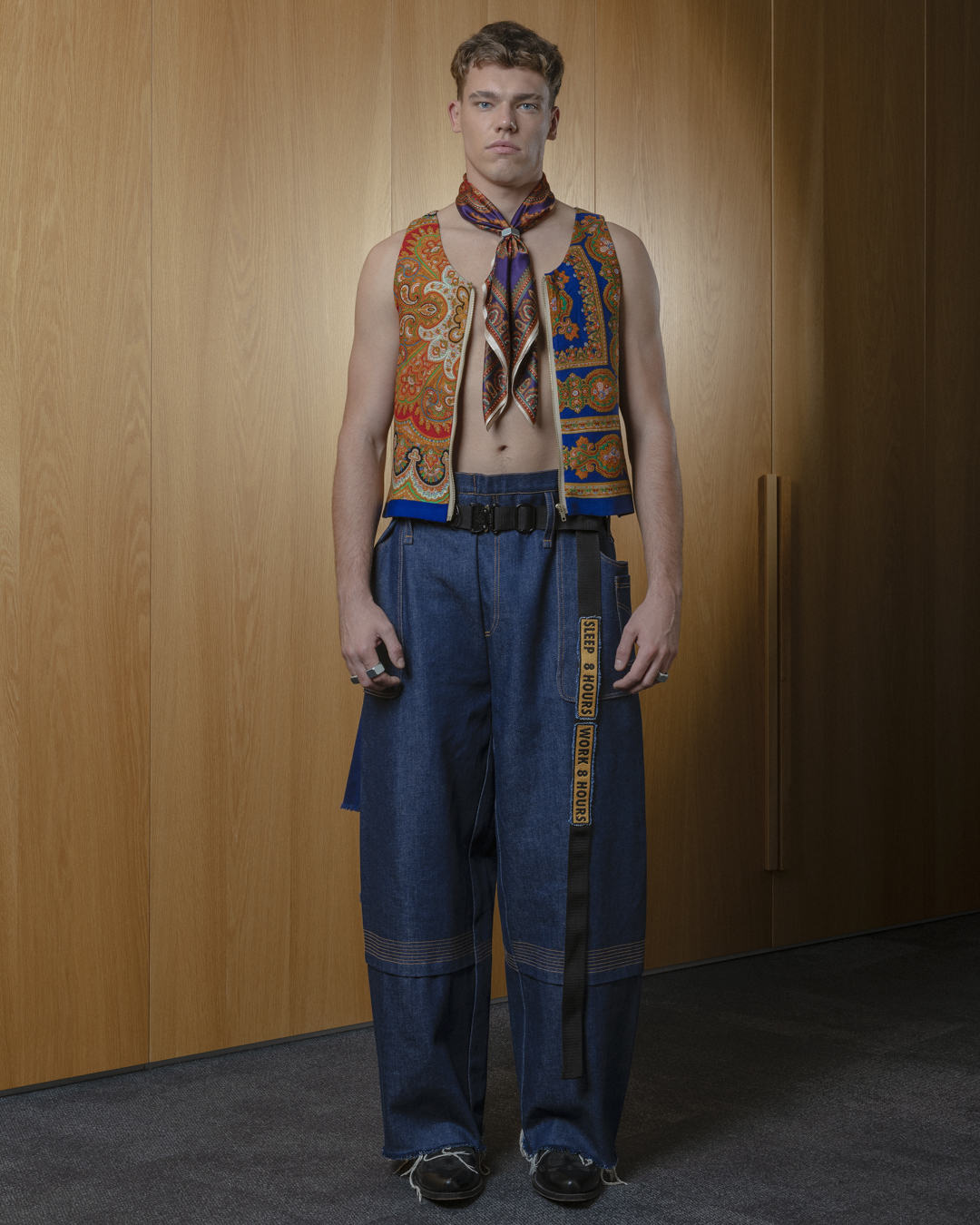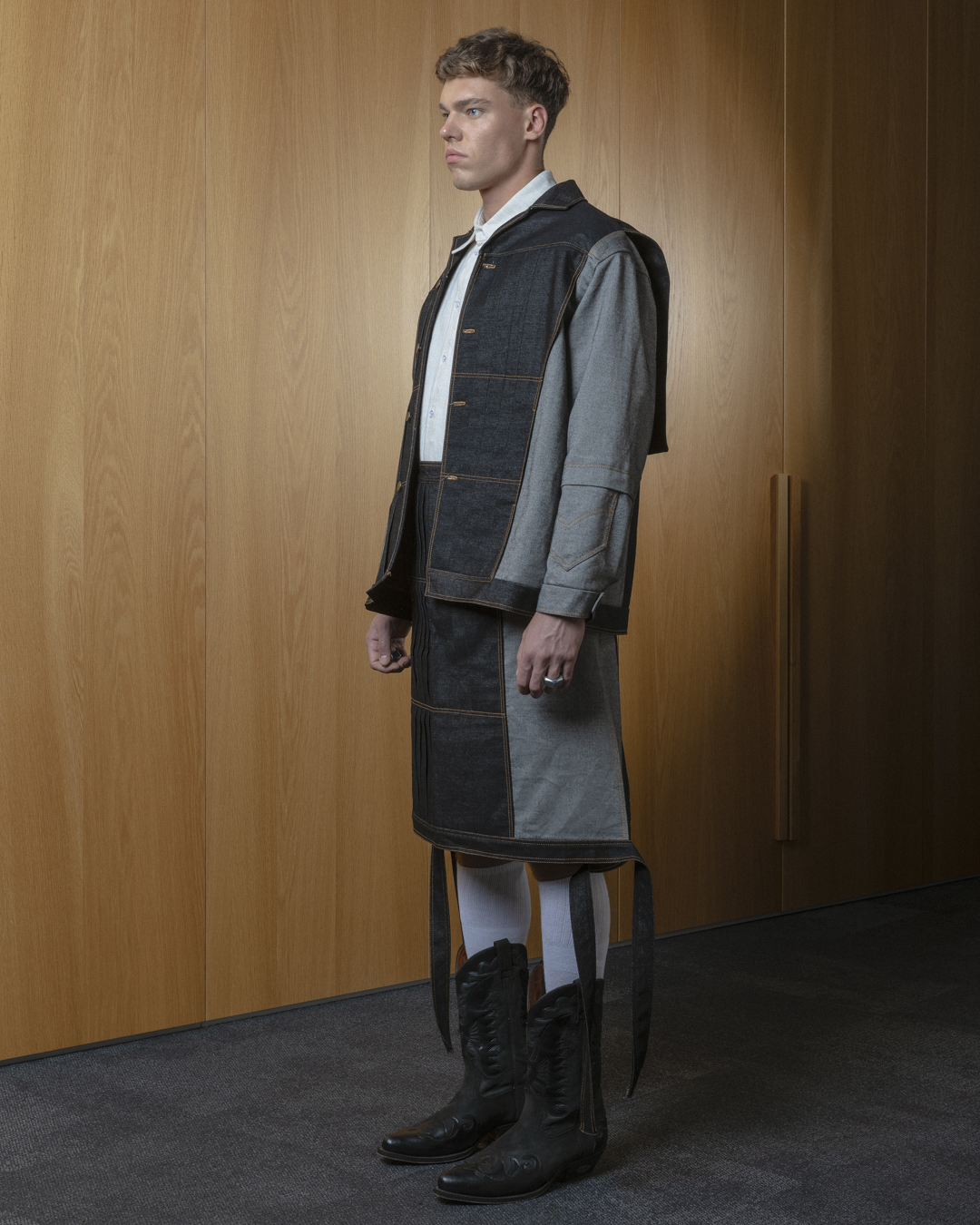 Odevný postoj v kolekcii asimilar je metaforou nadobudnutej konformity, ktorá ovplyvňuje úsudok ľudí. Ich názor je podprahovo ovládaný a mení sa v niekoho prospech (hoaxy, fake news, dezinformácie). Filmová inšpirácia They Live (John Carpenter, 1988) ilustruje stanovený koncept a zároveň vedie pristupovanie k odevu. Kolekcia osemnástich rôznych siluet pracuje s výberom odevov z denimu, ktoré sú nositeľmi konceptu. Postupne dochádza k strihovej asimilácii odevného druhu, ktorá je o to razantnejšia v kontraste s notoricky známym tvarom denimových odevov. Výrazovým prvkom včleneným do odevov je použitie vlnených šatiek, takzvaných tibetiek. Tie boli tuzexovým tovarom a módne kopírovali perzské vzory, čím vhodne dopĺňajú koncept implementácie zmeny tradičného odevu.