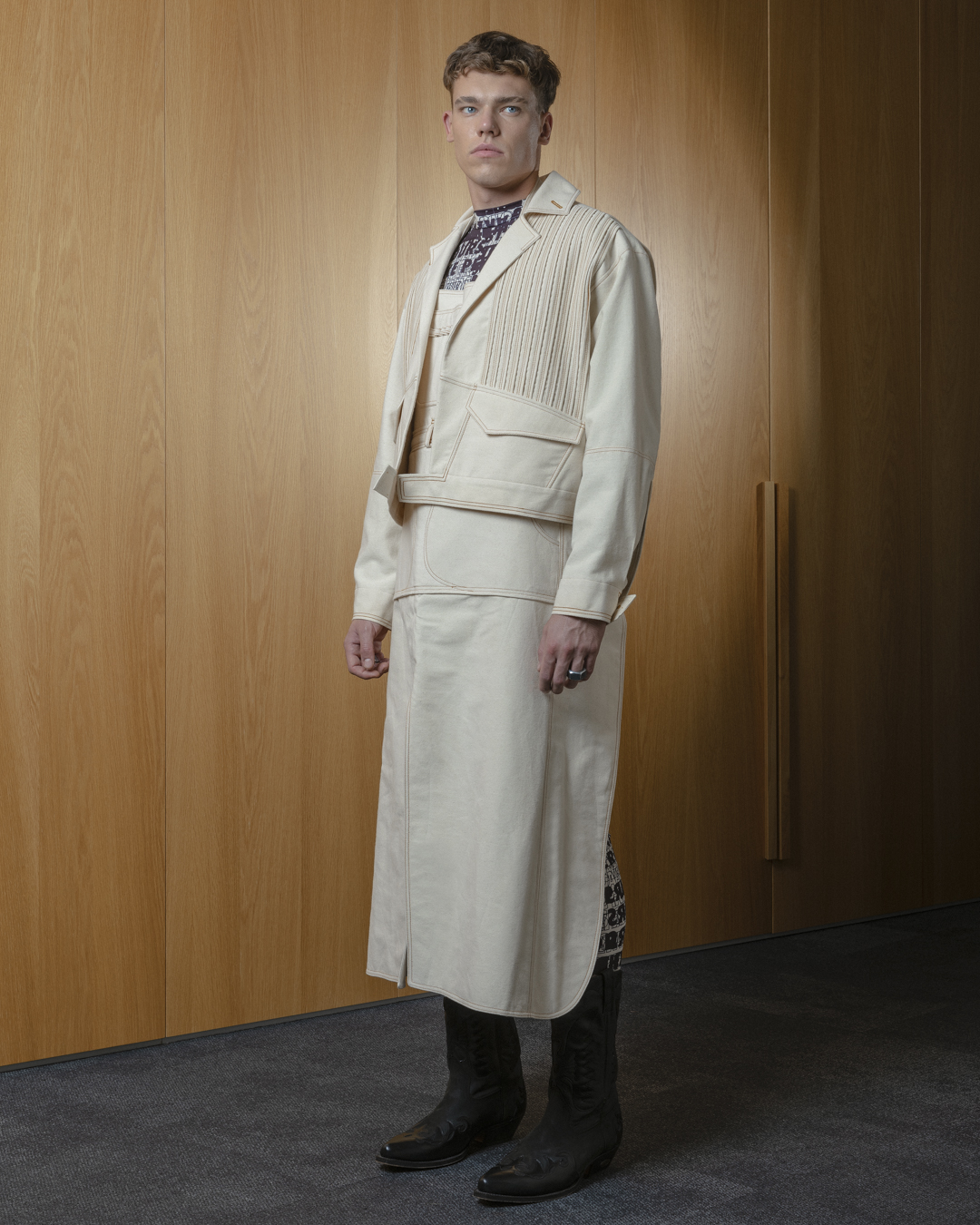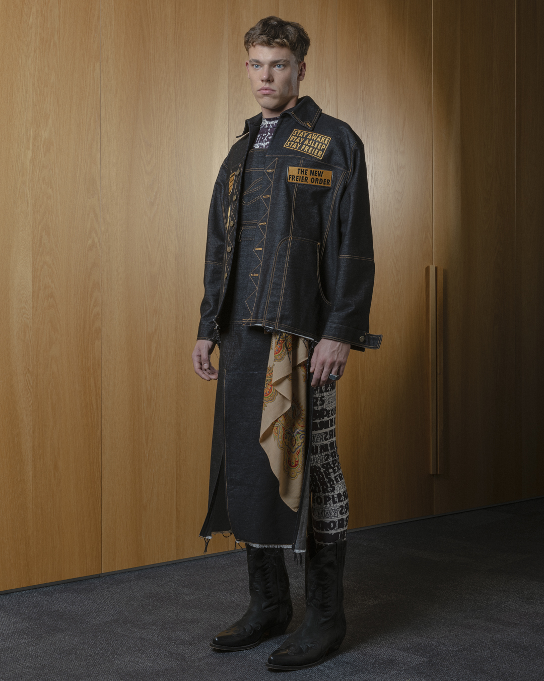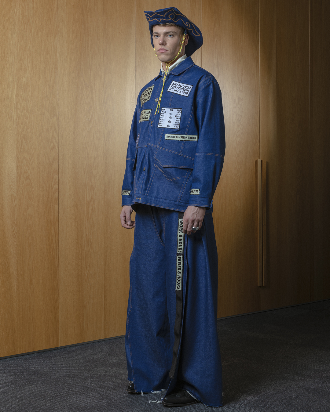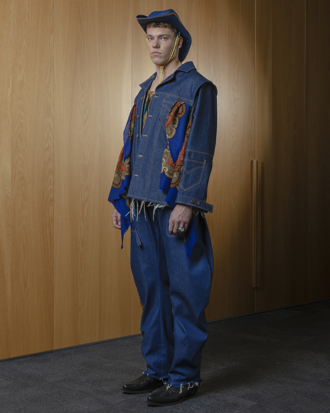 Odevný postoj v kolekcii asimilar je metaforou nadobudnutej konformity, ktorá ovplyvňuje úsudok ľudí. Ich názor je podprahovo ovládaný a mení sa v niekoho prospech (hoaxy, fake news, dezinformácie). Filmová inšpirácia They Live (John Carpenter, 1988) ilustruje stanovený koncept a zároveň vedie pristupovanie k odevu. Kolekcia osemnástich rôznych siluet pracuje s výberom odevov z denimu, ktoré sú nositeľmi konceptu. Postupne dochádza k strihovej asimilácii odevného druhu, ktorá je o to razantnejšia v kontraste s notoricky známym tvarom denimových odevov. Výrazovým prvkom včleneným do odevov je použitie vlnených šatiek, takzvaných tibetiek. Tie boli tuzexovým tovarom a módne kopírovali perzské vzory, čím vhodne dopĺňajú koncept implementácie zmeny tradičného odevu.
