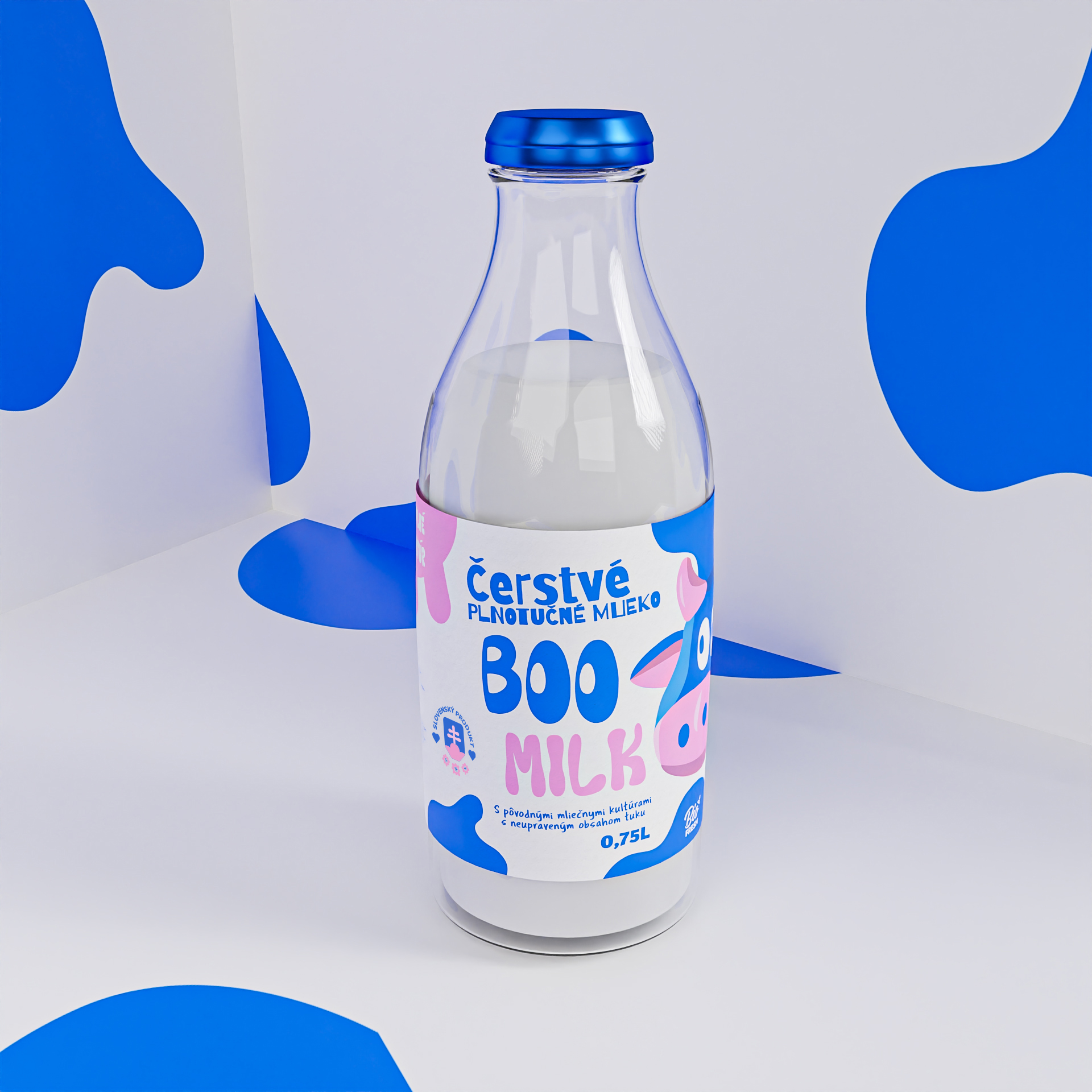 BOO MILK je prémiové mlieko z radu Bio FRESH, známe svojou vysokou kvalitou a čistotou. Cieľom redizajnu je posilniť pozíciu BOO MILK na trhu a zvýšiť jeho rozpoznateľnosť medzi konkurenciou. Redizajn zdôrazňuje unikátnosť BOO MILK prostredníctvom inovatívneho vizuálneho jazyka a odlišuje ho od ostatných produktov v portfóliu Bio FRESH aj na trhu. Nový dizajn využíva atraktívne farby a modernú typografiu a maskota aby upútal pozornosť a vytvoril silný prvý dojem na pultoch obchodov.