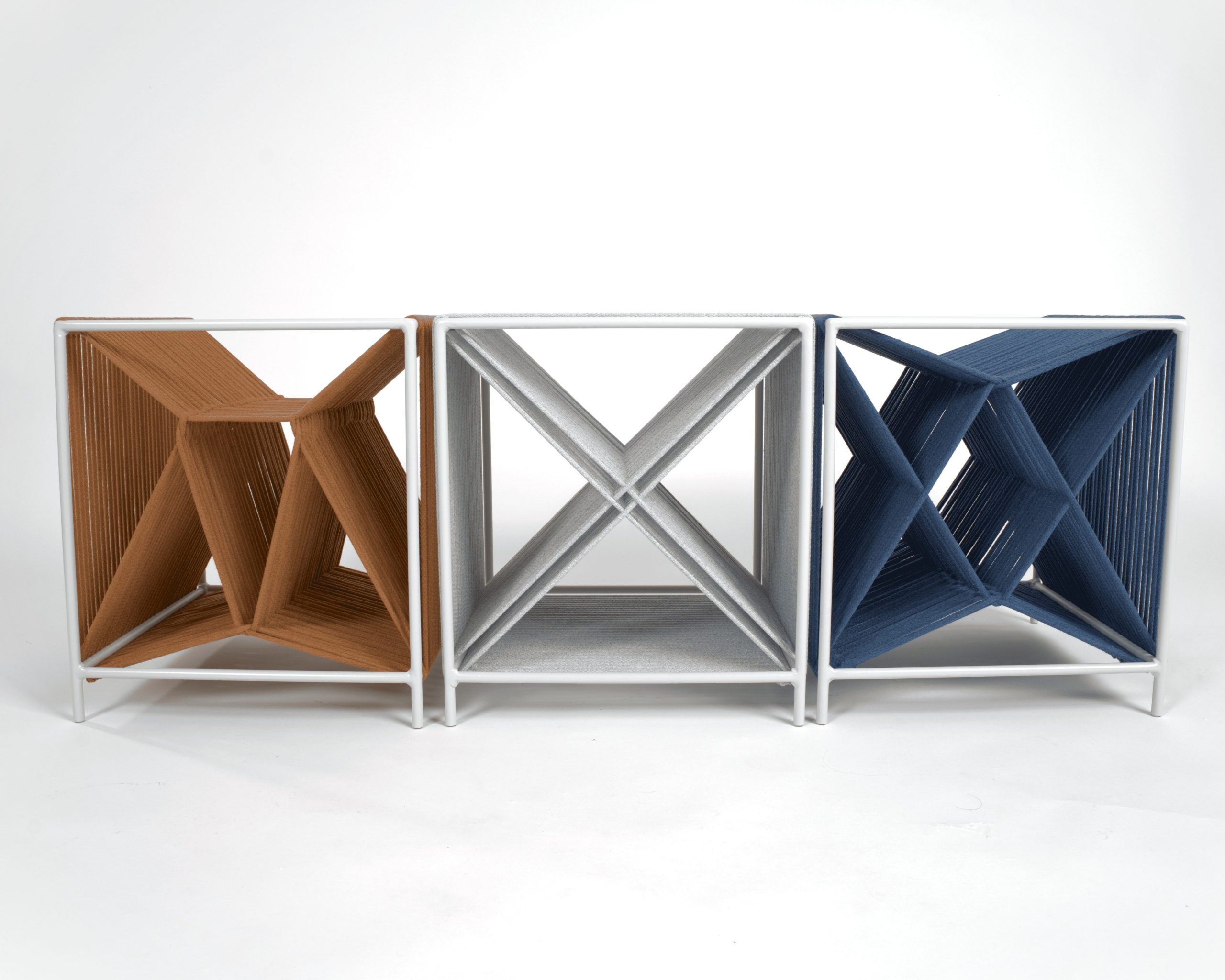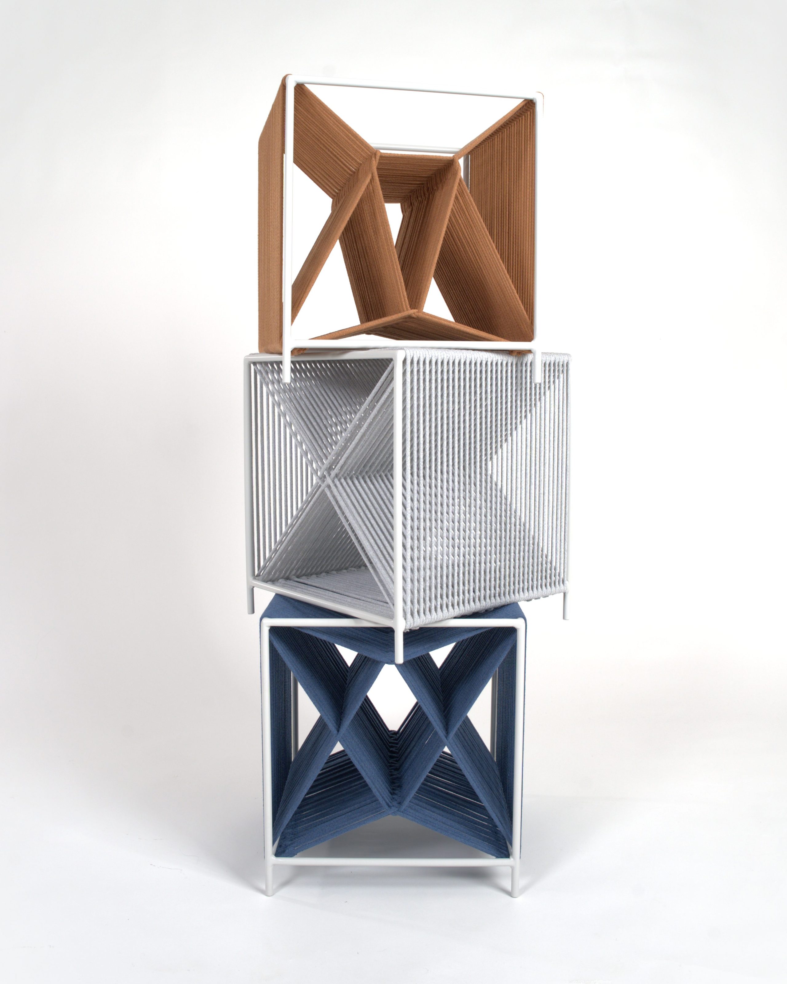 Cradles je kolekcia troch multifunkčných interiérových objektov, ktoré prepájajú oceľovú konštrukciu s ručne vytváraným výpletom z recyklovanej bavlnenej šnúry. Výplety sú inšpirované vzormi z tradičnej ľudovej hry preberanie povrázka, ktoré boli prenesené do funkčného dizajnu. Primárnou funkciou produktov je poskytovať úložný priestor, no môžu byť využité aj ako taburet alebo stolík (zabezpečuje odnímateľný plechový komponent). Kolekcia reflektuje potrebu organizácie priestoru a zároveň prepája tradíciu a remeslo s aktuálnym jazykom nábytkového dizajnu.