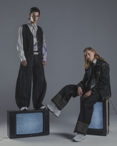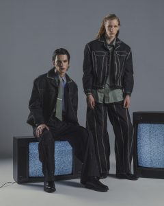 Defectum sleduje siluetu odevu, ktorá sa na prvý pohľad javí ako dokonalá, no má v sebe implementované chyby. Rovnako ako skreslená realita sociálnych médií a jej zinscenovaná dokonalosť, ktorú reflektujeme prostredníctvom filmovej klasiky Americké psycho (Mary Harron, 2000). Styling vzorov a odevných súčiastok má za účel vytvoriť obraz súčasného Yuppie a viesť náladu kolekcie. Významné miesto ma zastúpenie dezénov, ktoré sú vytvorené na mieru v spolupráci s textilným dizajnérom Jurajom Strakom.