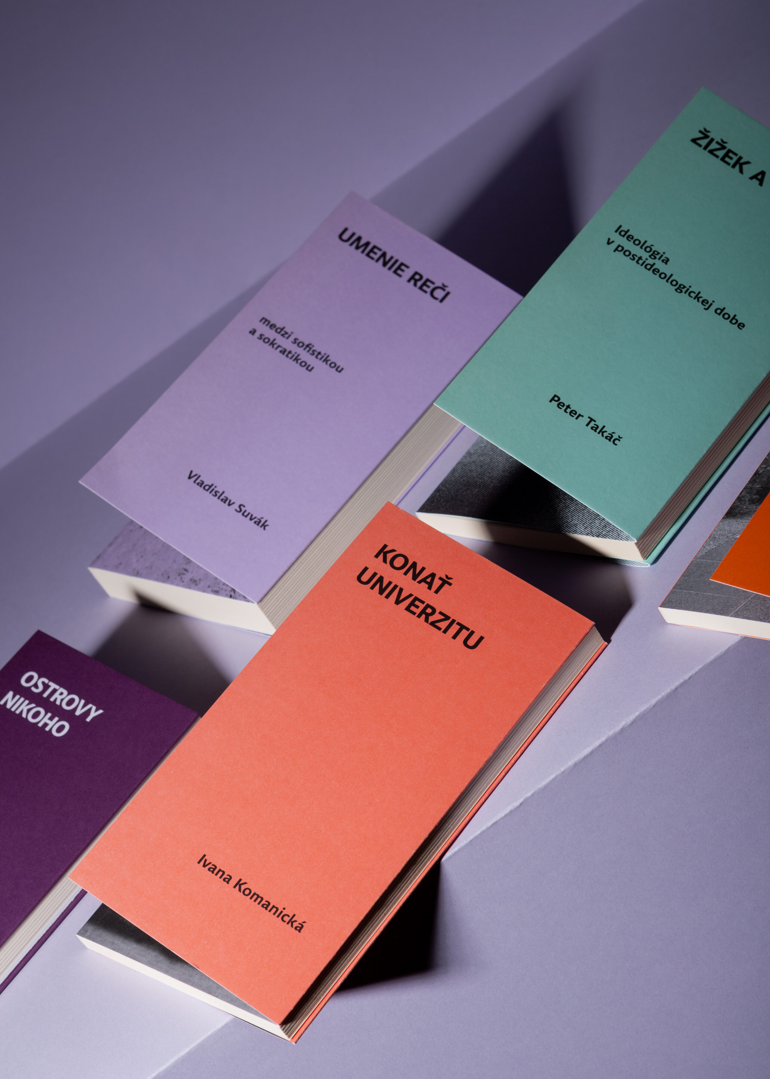 Pre vydavateľstvo Horská lucerna som vytvorila základný vizuál edície pre odborné eseje. Jednou zo základných podmienok bol ekonomický aspekt pri tlači, preto sme zvolili jednoduchý knižný papier Holmen, ktorý bol nielen ekonomickou voľbou, ale kvôli vhodnému volumenu papiera odľahčuje knihu. Chlopňová obálka nesúca reprodukciu diela je doplnená priamou farbou, ktorá je pri každej knihe iná. Obálku je možné pri používaní variovať a to tak, že sa čitateľ/ka môže rozhodnúť či chce názov diela „ukázať“ alebo sa s názvom chce „zatajiť“ a nechať vyniknúť reprodukciu diela, fotografiu.