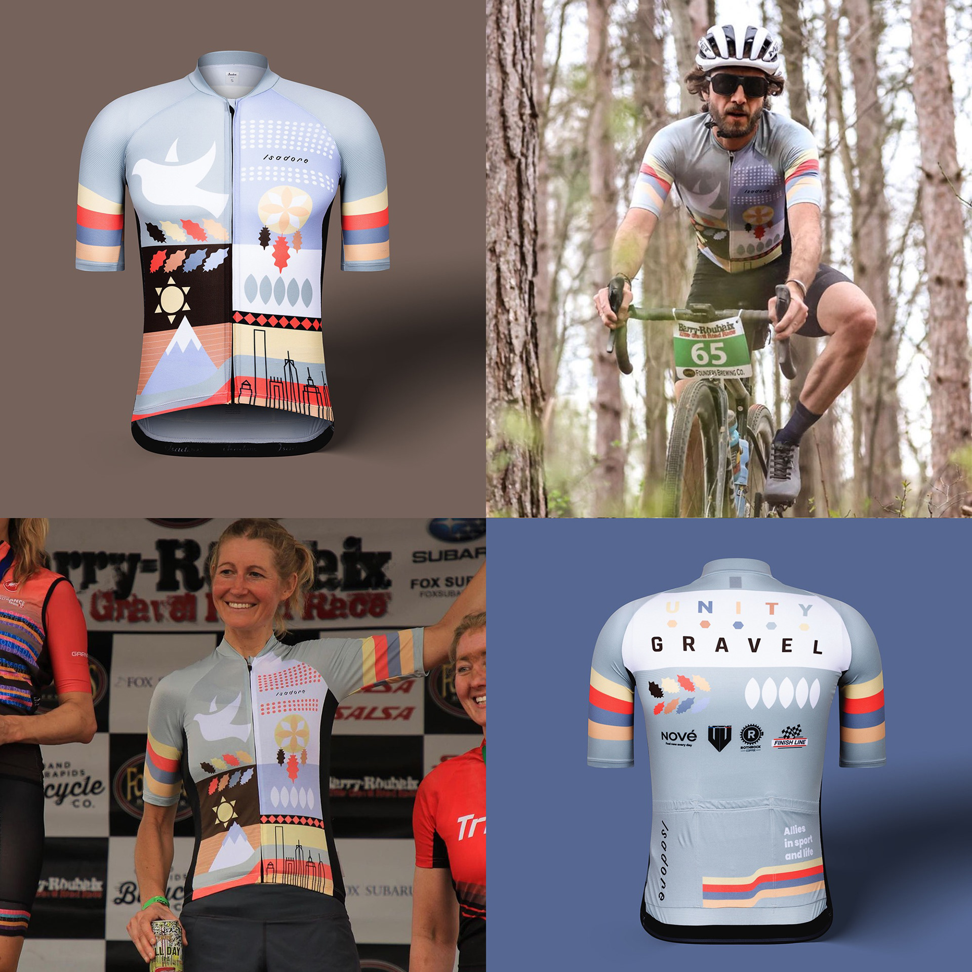 Grafický dizajn dresu Isadore pre tím Unity Gravel z New Yorku. Dres odkazuje na pôvod zakladajúcich členov tímu, ktorí síce žjú v New Yorku, ale majú indiánsky pôvod, preto su na drese zobrazené aj detaily z mestkého života, ale aj zo života pôvodných obyvateľov. Silueta mesta odkazuje na mestský životný štýl, ale lapač snov, hory, listy a holubica zase odkazujú na pôvodné hodnoty. Dres Isadore má farebnú, ale aj čiernu verziu, k dresu je nadizajnovaná aj cyklistická vesta.