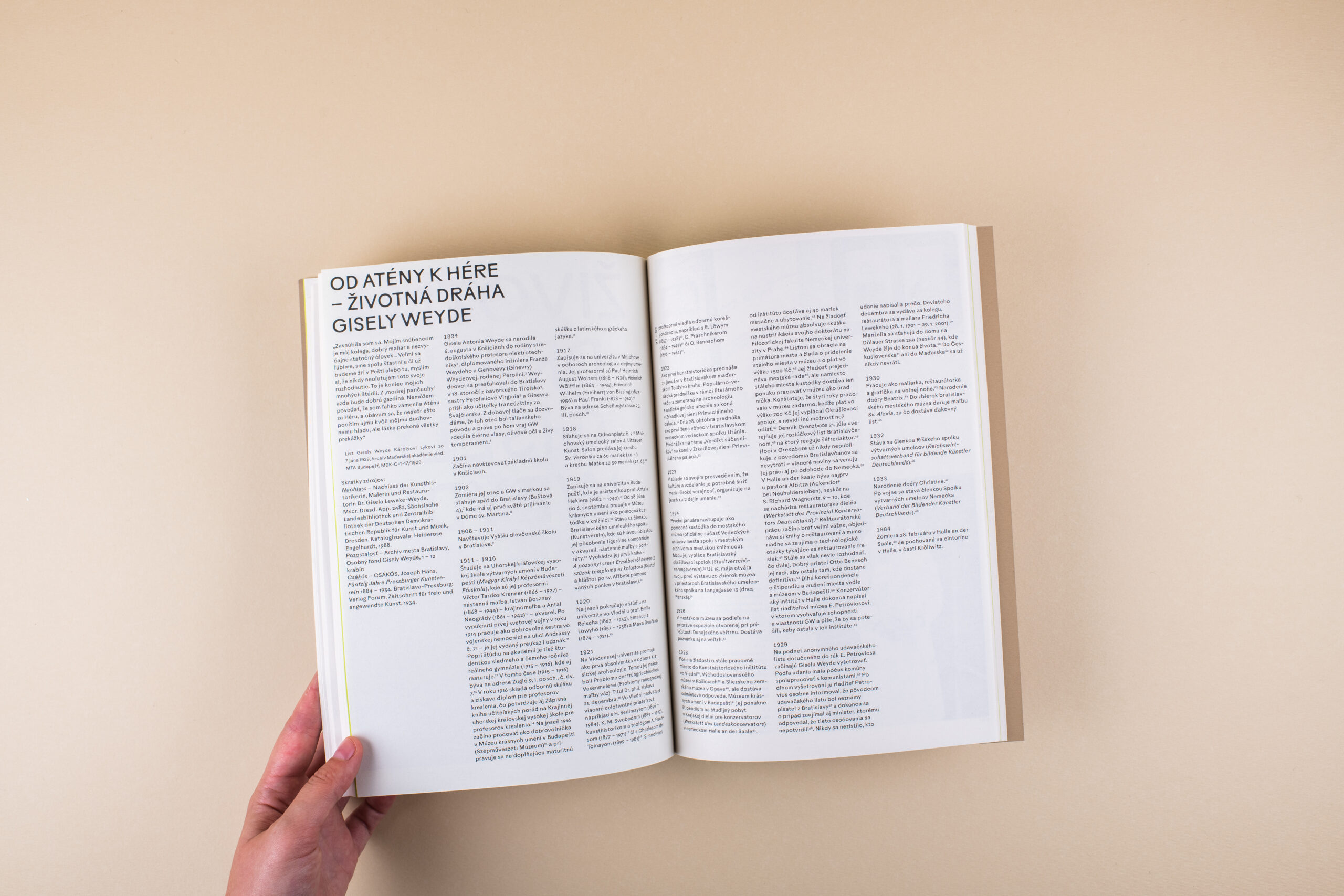 Katalóg k výstave Gisela Weyde. Od Atény k Hére predstavuje život, umeleckú tvorbu a kunsthistorickú prácu Gisely Weyde (1894 Košice – 1984 Halle, Nemecko), pričom sa sústreďuje predovšetkým na dvadsiate roky 20. storočia. Autorkina tvorba bola spracovaná veľmi sporadicky a jej práci v oblasti histórie umenia a pamiatkovej starostlivosti bola venovaná len okrajová pozornosť. Väčšie množstvo materiálov sa zachovalo v archívoch v Bratislave, Drážďanoch a v Budapešti.