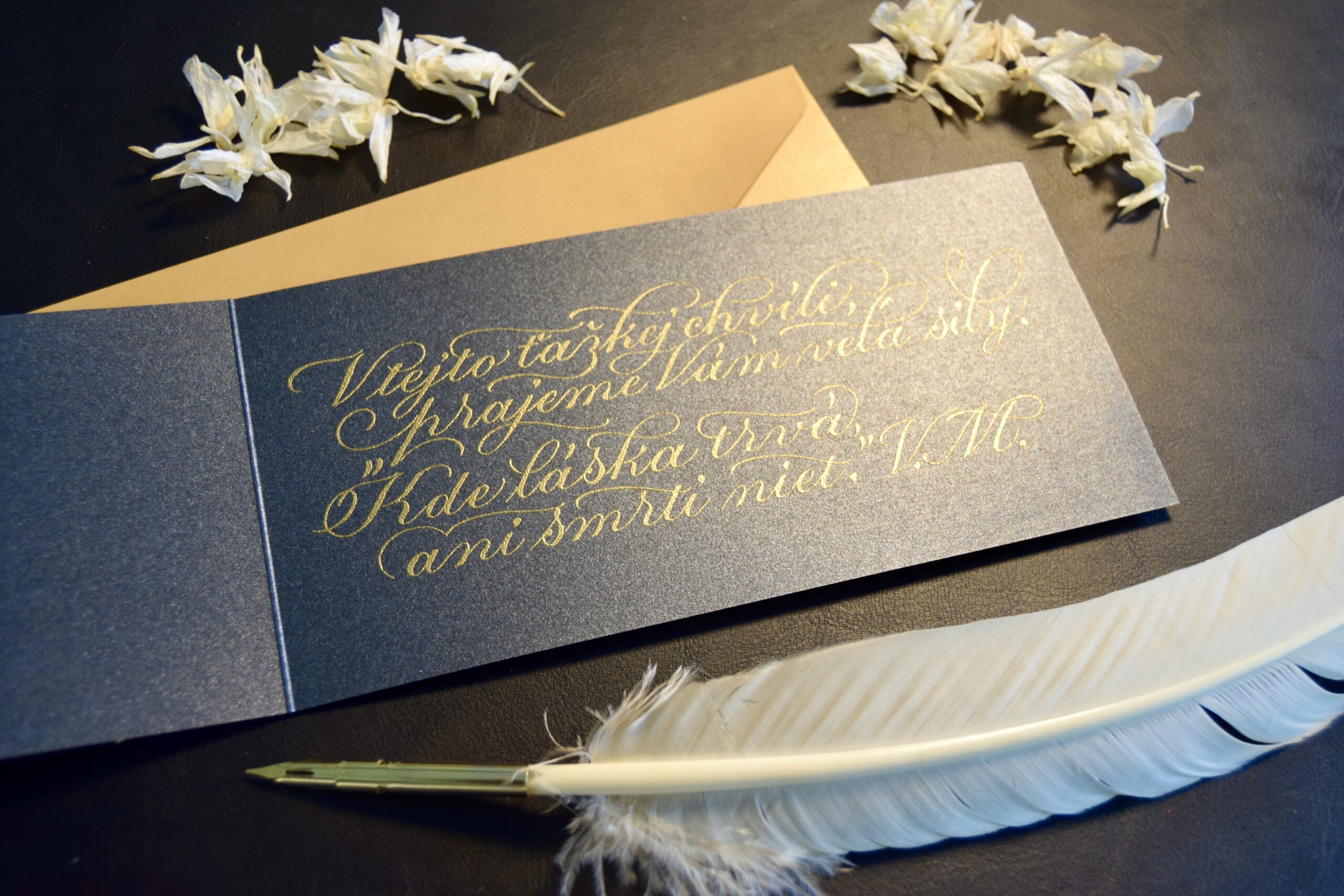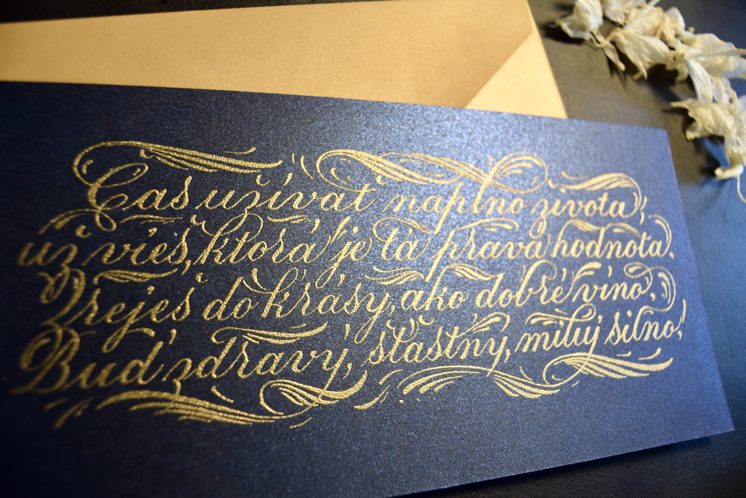 Kaligrafické priania sú súborom 10 druhov blahoželaní na rôzne životné udalosti: narodeniny, meniny, jubileá 40, 50, 60, kondolencia, promócie, krstiny, svadba a vianočná edícia, ktorá vychádza každý rok nová. Podľa ručne písanej predlohy autorského textu, 3D zlatou termogravúrou tlačené v náklade 100ks na 250g metalickom papieri v DL formáte, sú na stojane umiestnené napr. v predajni s výberovým alkoholom a delikatesami Kubbo Select v Košiciach. Umelecká korešpondencia predstavuje alternatívu k bežne dostupným blahoželaniam a je darčekom s pridanou hodnotou aj v čase pandémie pri sociálnej izolácii, pretože ručné písmo pôsobí osobnejšie a krajšie. Do budúcna plánujeme pridať anglickú verziu a ďalšie druhy prianí.