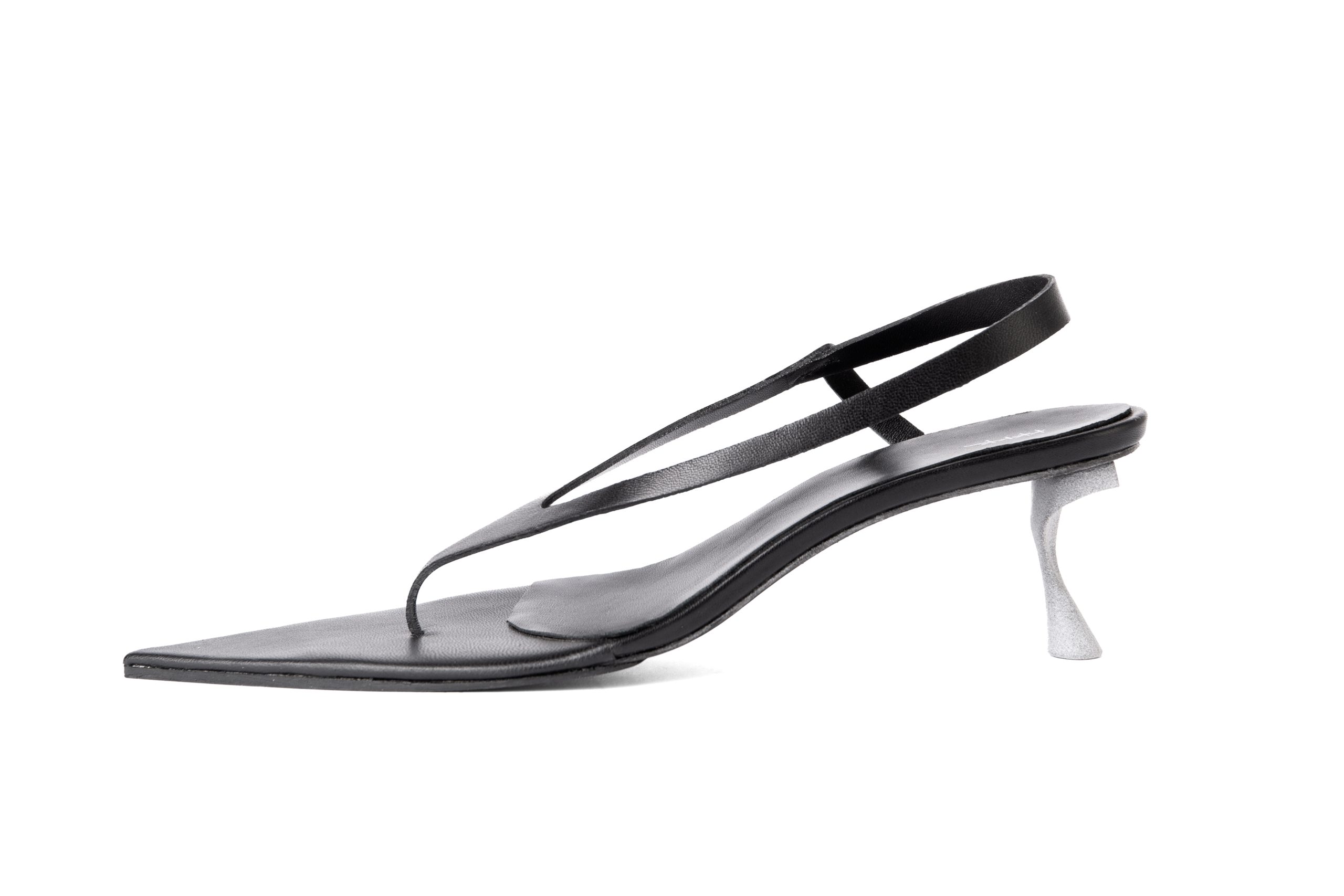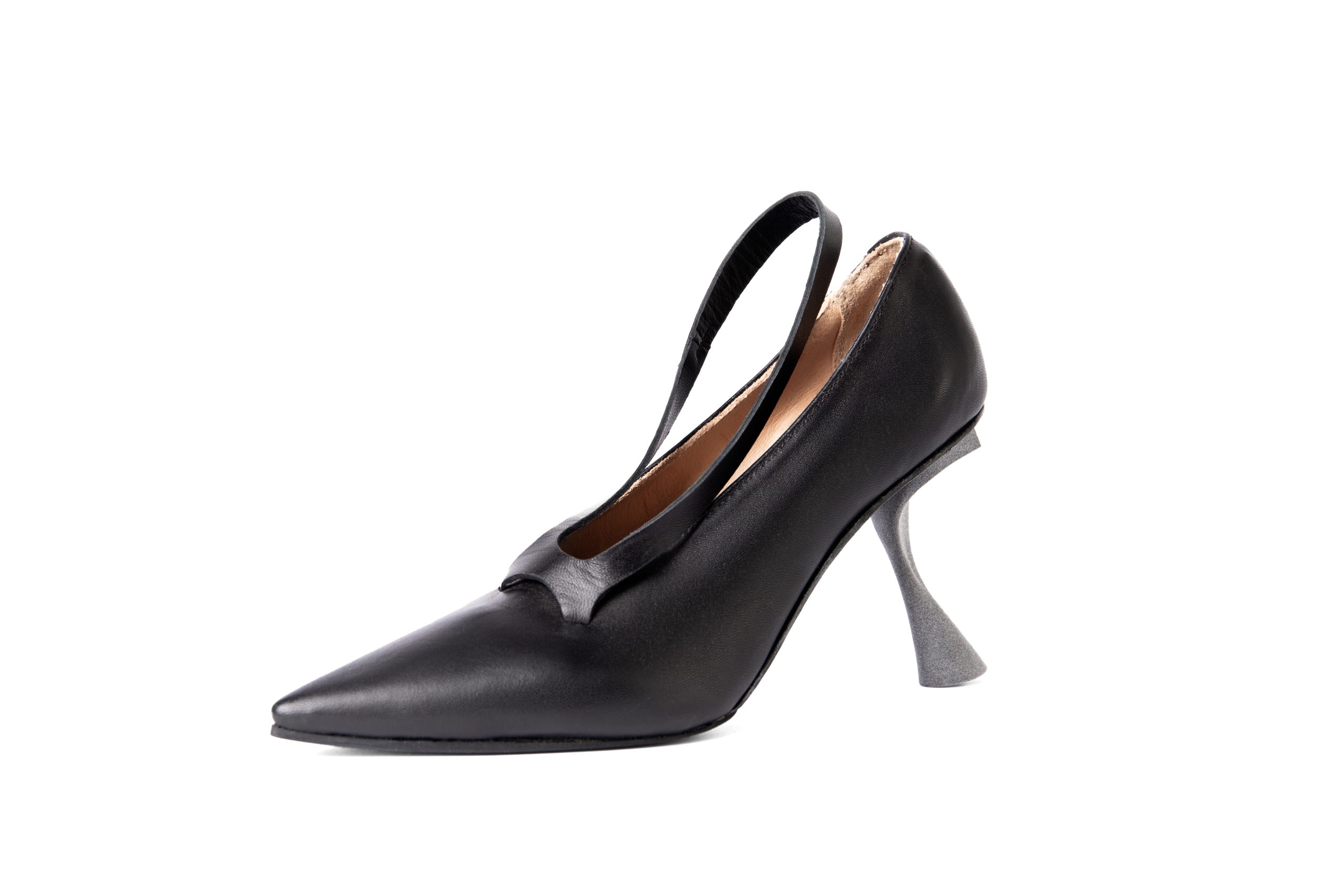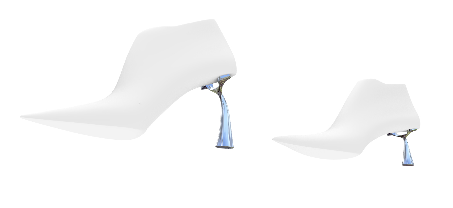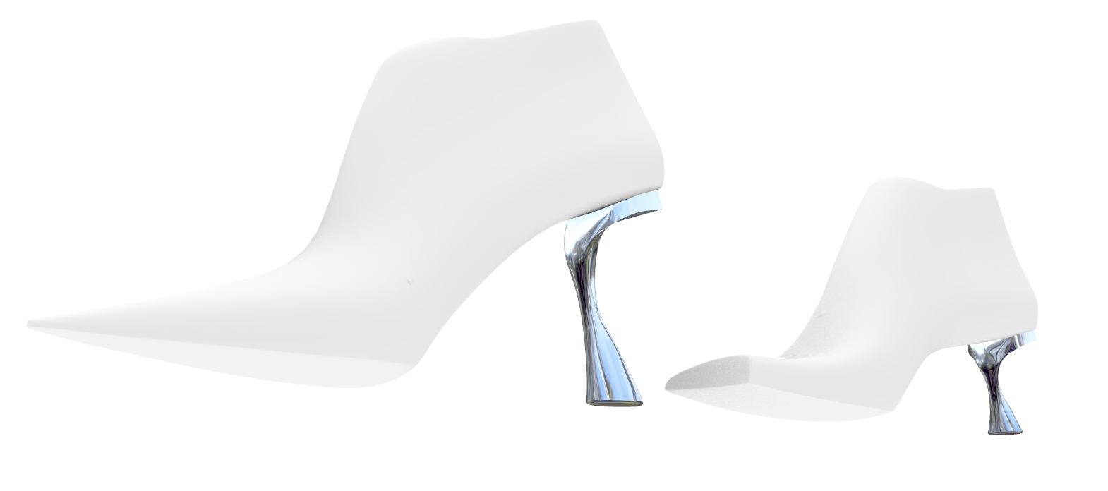 Diplomová práca sa zaoberá pilotným výskumom 3D tlače kovov so zameraním na jej využitie v obuvníckom priemysle, konkrétne pri výrobe podpätkov. Výstupom práce sú tri páry kovových 3D tlačených podpätkov a tri páry obuvi. Výskum skúmal relevantnosť a možnosti využitia tejto technológie, pričom boli sledované jej pozitívne aj negatívne aspekty. Cieľom bolo overiť spôsob výroby, ktorý by priniesol menšiu opotrebovateľnosť počas nosenia a zároveň umožnil širšie spektrum kreatívneho vyjadrenia, ktoré ponúka tvrdosť kovového materiálu. Zároveň práca poukazuje na potenciál aplikácie tejto novej technológie v priemysle, kde sa zatiaľ bežne nevyužíva. Vizuálna stránka projektu je inšpirovaná tvorbou dizajnérov Charlesa Eamesa, Miesa van der Roheho a estetikou action office a cubicle.