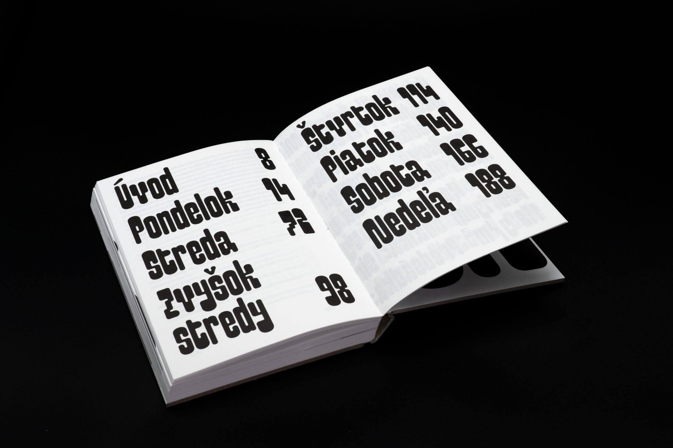 Kniha používa experimentálnu výraznú typografiu. Zvolené písmo je ústredným prvkom knihy, zohráva až ilustračnú ulohu. Práca s písmom a tradičnými prvkami knihy ako sú tiráž či isbn kód použitými v niekoľkonásobne väčšej mierke čitateľa zarazí. Pôsôbia nepatrične až bizarne, narušujú tradičný poriadok knihy. Ako sa píše v samotnej anotácii knihy: Román je rozprávaný cynickým rozprávačom, ktorý neberie vážne skoro nič a najmä nie seba samého – a presne rovnaký pocit môže mať čitateľ už z grafického stvárnenia knihy. Použité prvky vzhľadom na obsah knihy nie sú bezúčelné ani nenarušujú čitateľnosť. Kniha ostáva knihou, no miestami jemne dráždi našu pozornosť.
