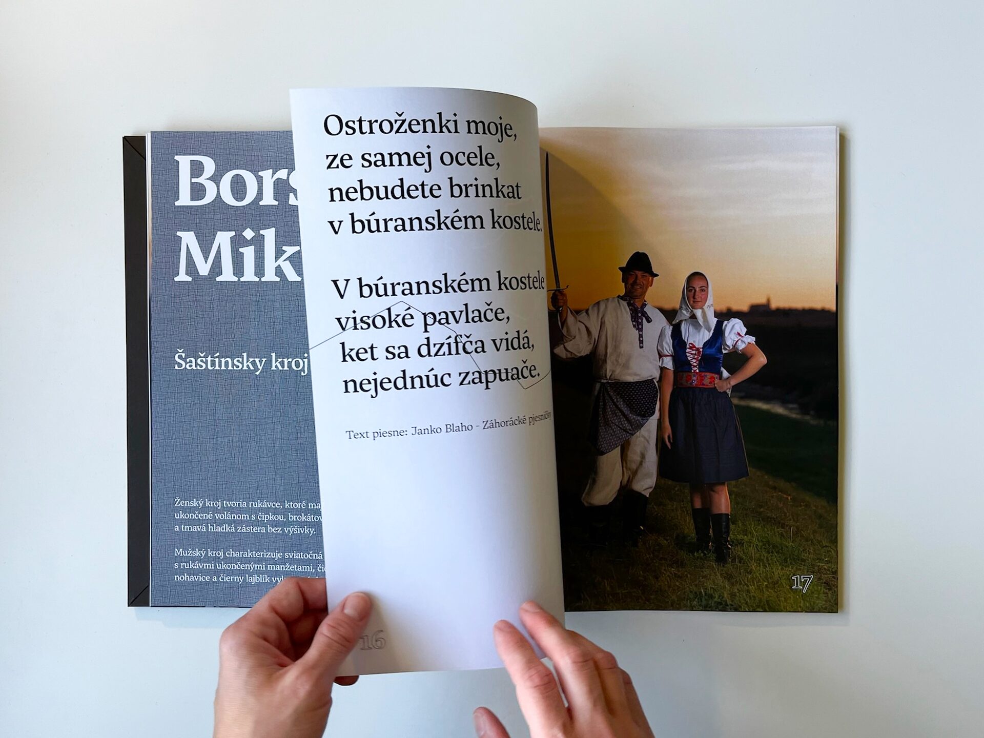 Veľkoformátová kniha venovaná zbierke tradičných krojov z regiónu Záhorie. Kniha mapuje krásu a rozmanitosť tradičných slovenských krojov, ktoré sa v minulosti v tomto regióne nosili. Fotografická zbierka krojov je rozdelená do 8 oblastí alebo kapitol, pričom každej z nich je pridelená najvýraznejšia farba z daného kroja. Súčasťou knihy je tiež séria fotoportrétov v 2 rôznych prevedeniach vytlačená na kvalitnom fotopapieri.