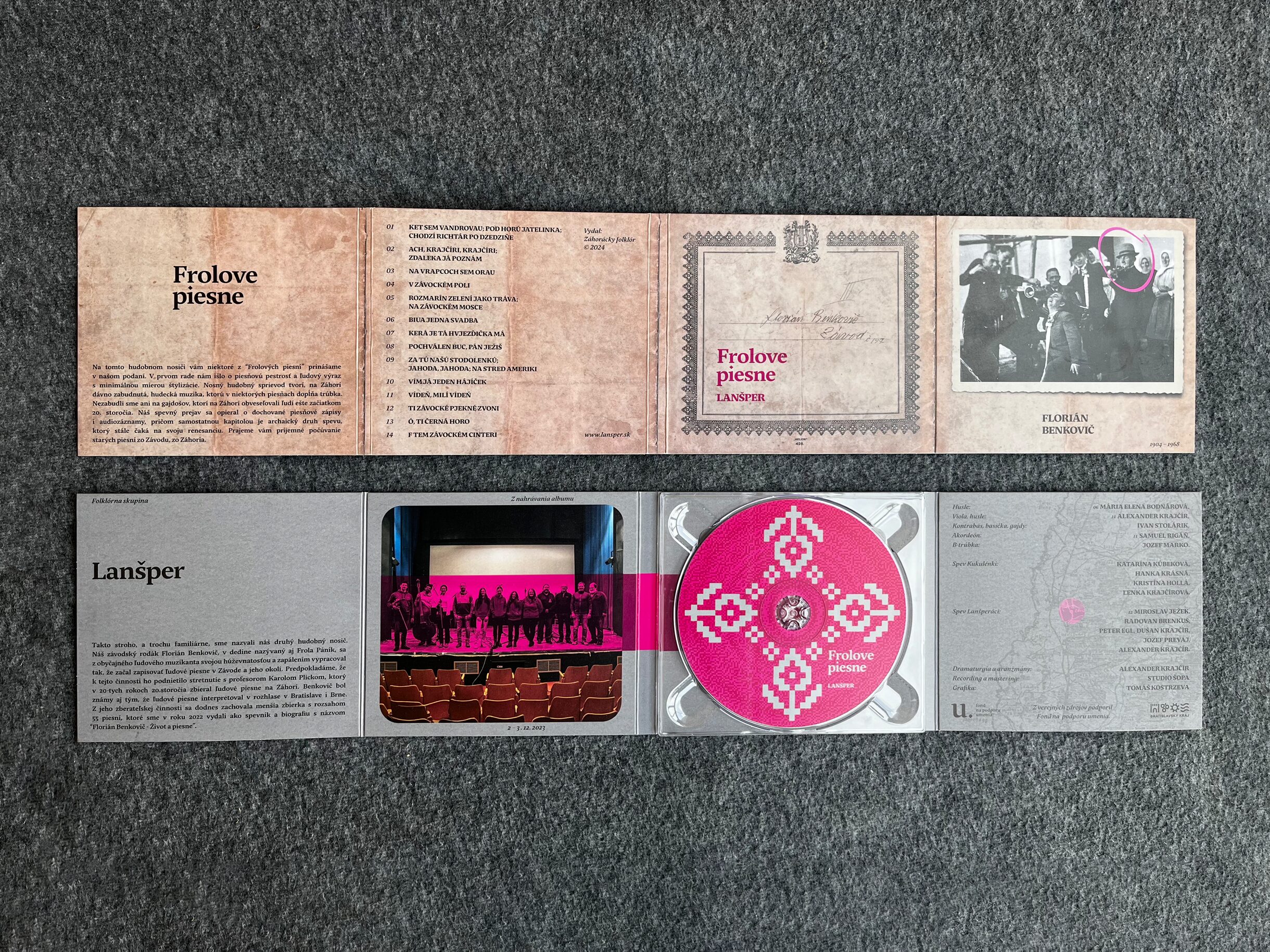 CD nosič uchováva zdigitalizované dedičstvo 21 ľudových piesní zo Záhoria. Obal nosiča je vytvorený z naskenovaného zachovaného spevníku, do ktorého si Florián Benkovič, tiež nazývaný ako Frolo v 50tich rokoch minulého storočia vlastnoručne zapisoval zozbierané piesne. Postupné otváranie digipacku vizuálne približuje sledovateľovi príbeh Frola a folklórnej skupiny Lanšper, ktorá sa rozhodla tieto dobové pesničky zhudobniť a zdigitalizovať.