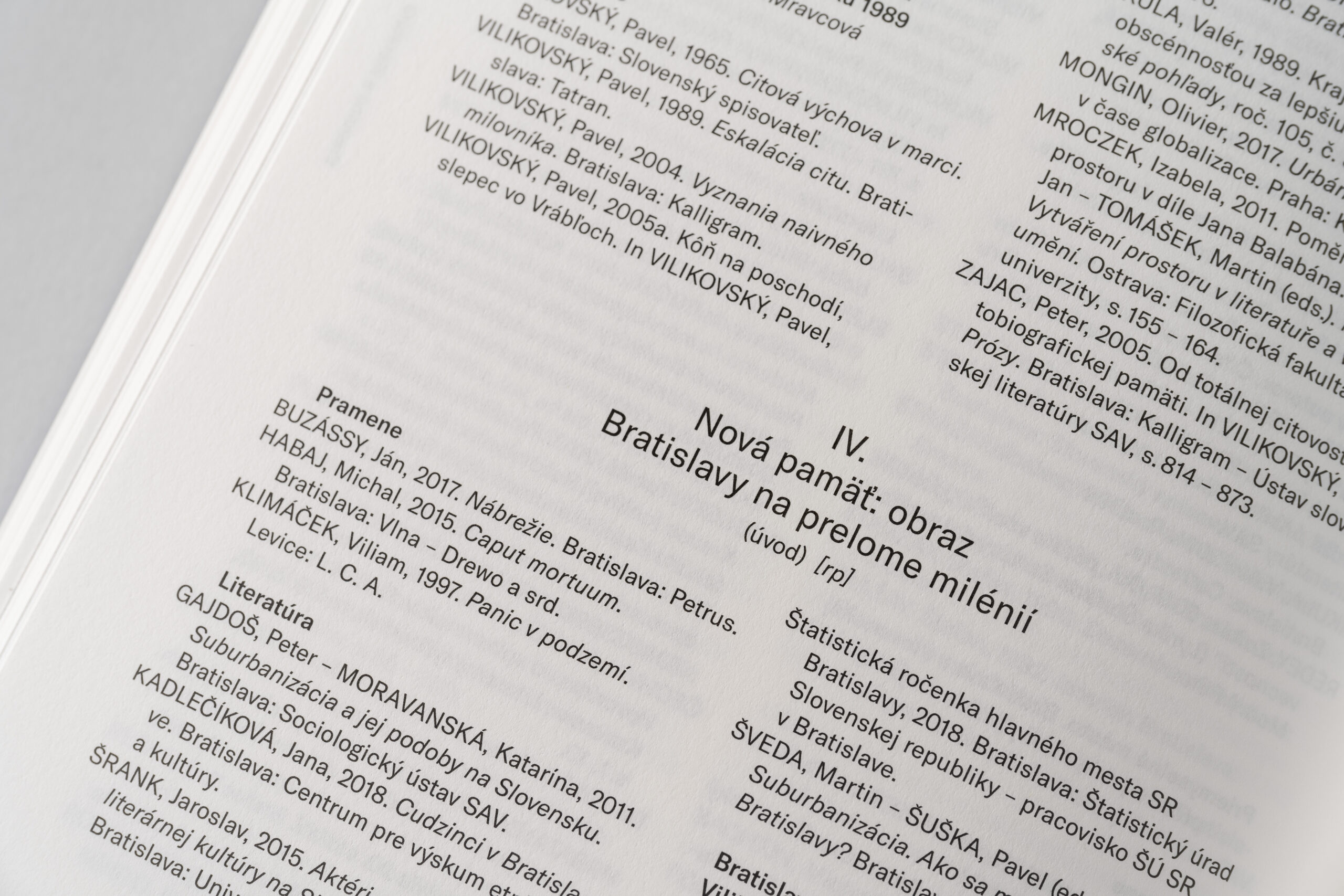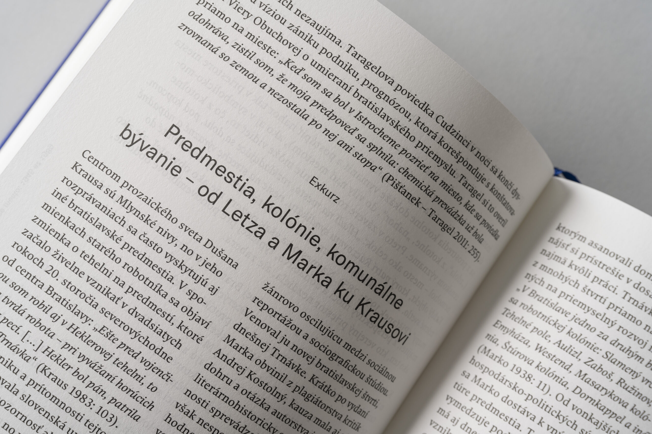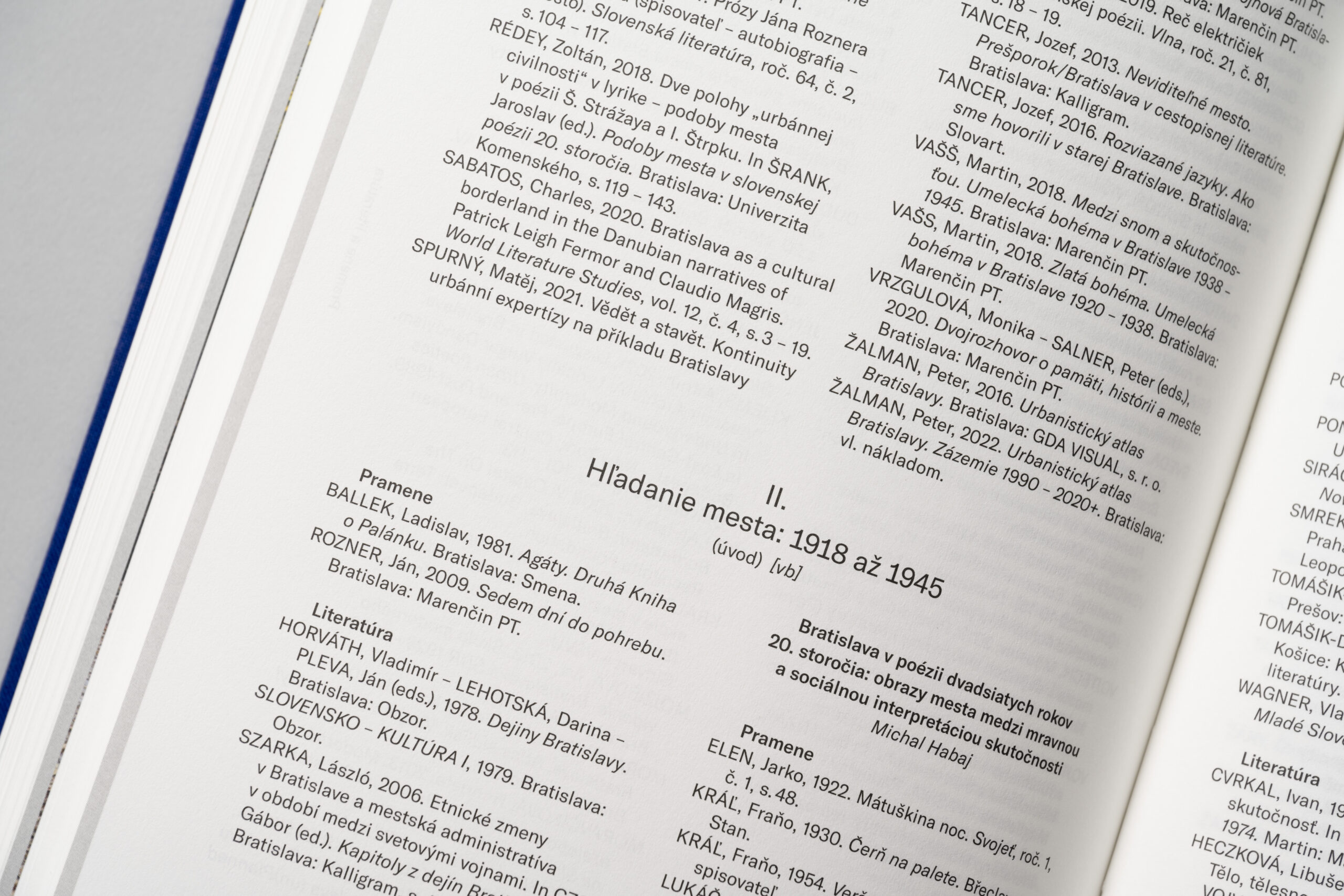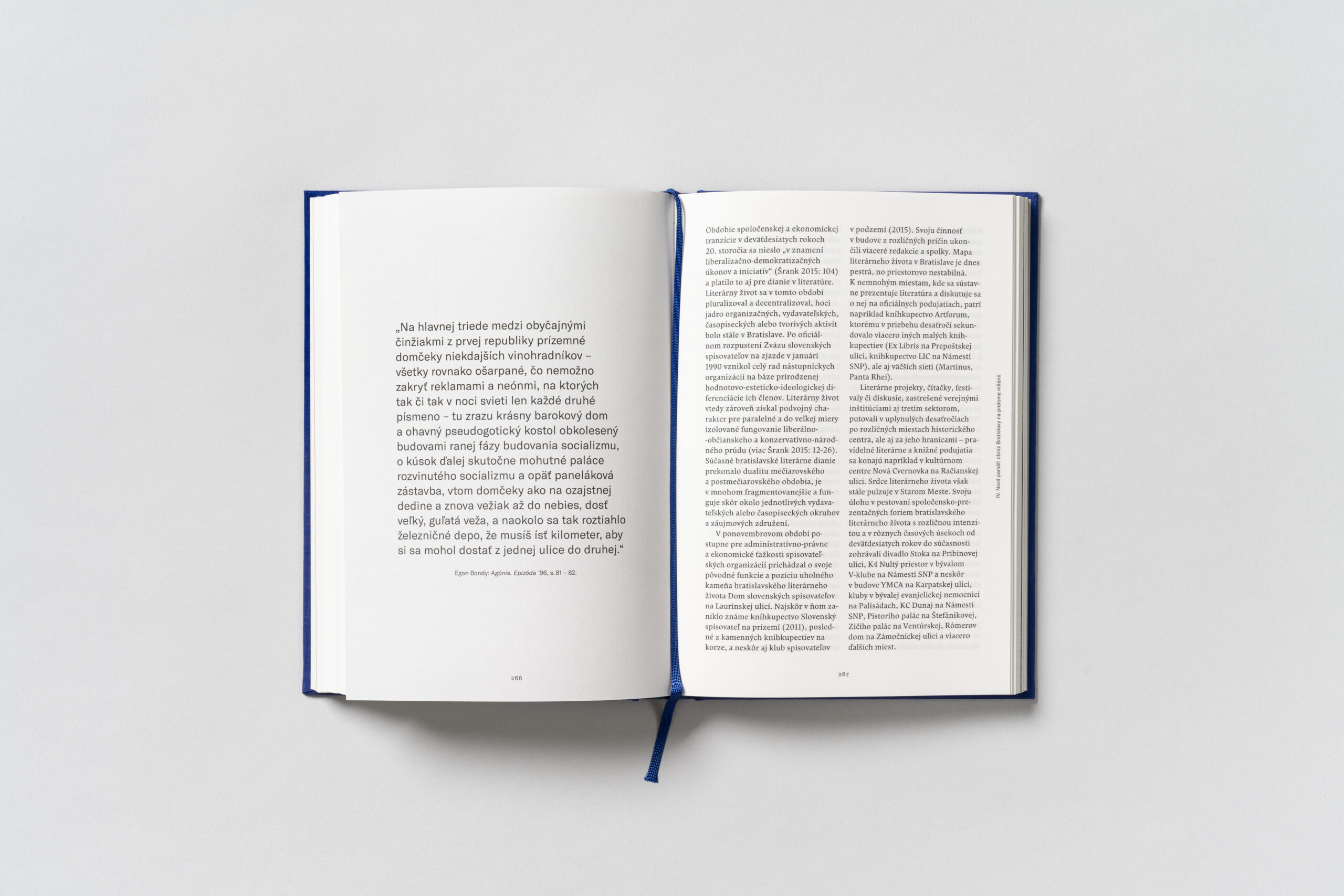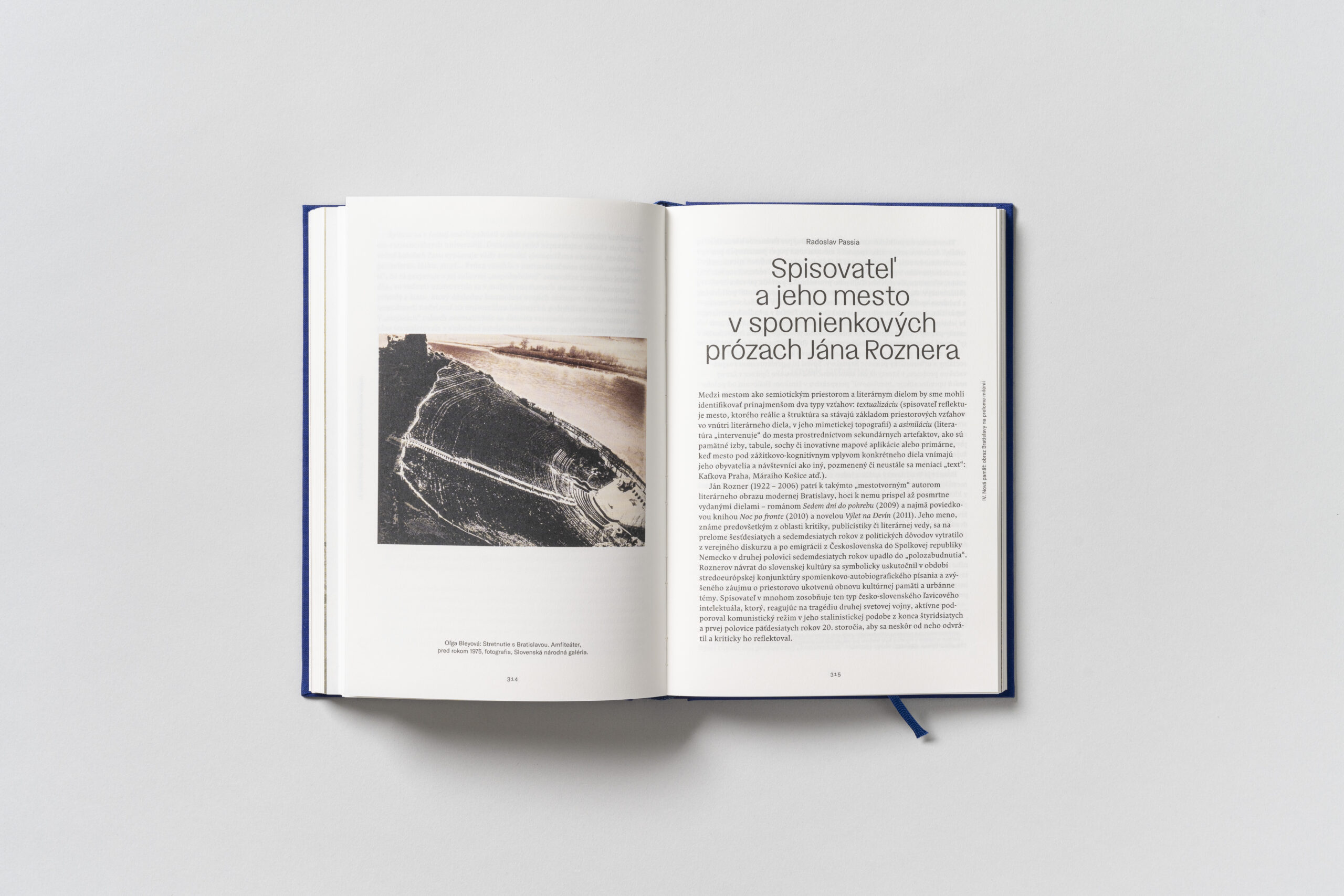 Kolektívna monografia je svojím zameraním ojedinelá a v istom zmysle prvolezecká. Desaťčlenný autorský kolektív v nej podáva výsledky výskumu literárneho obrazu Bratislavy, vytvára a interpretuje katalóg jeho kľúčových toposov v časovom rámci približne jedného storočia, v ktorom slovenská metropola prešla zásadnými politickými, etnickými a kultúrnymi zmenami. Kniha je viazaná v kráľovsky modrom plátne. Na obálke je použité dielo Júliusa Kollera. Písmo Badbite, použité na chrbáte a na predelových stranách kapitol, je od slovenského dizajnéra Róberta Púčeka. Autori Radoslav Passia, Vladimír Barborík a kolektív. Formát 170 × 237 mm, 456 strán. Úprava fotografií: Pavel Kordoš