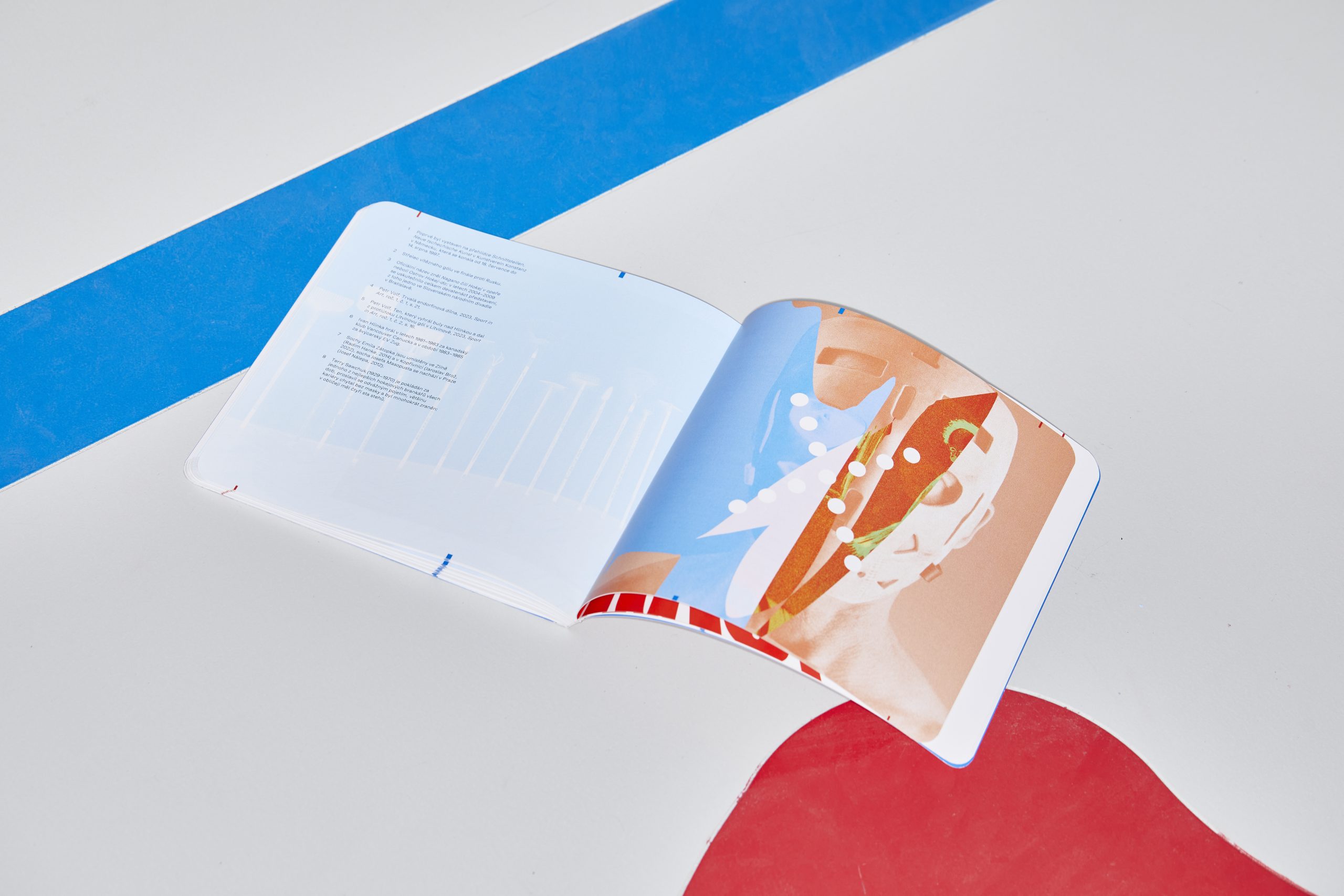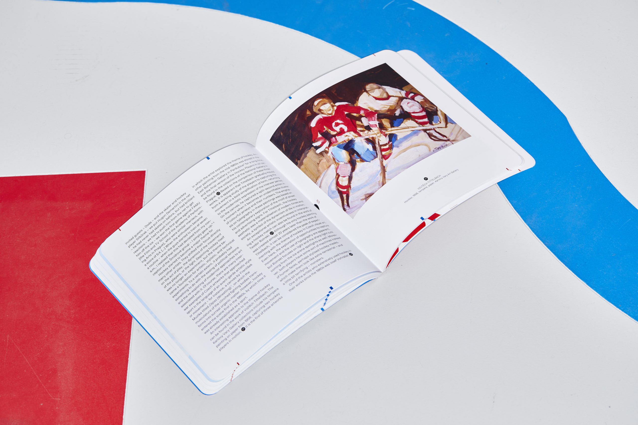 Na vytvorenie vizuálu a katalógu sme použili písmo PUQ, ktoré vytvorila Simona Császárová. Grafické riešenie je inšpirované hokejovým ihriskom a hlavným motívom diela Teodora Rotrekla „Hokejisti“ a zdôrazňuje ho hokejovou dynamikou a estetikou v grafických motívoch.