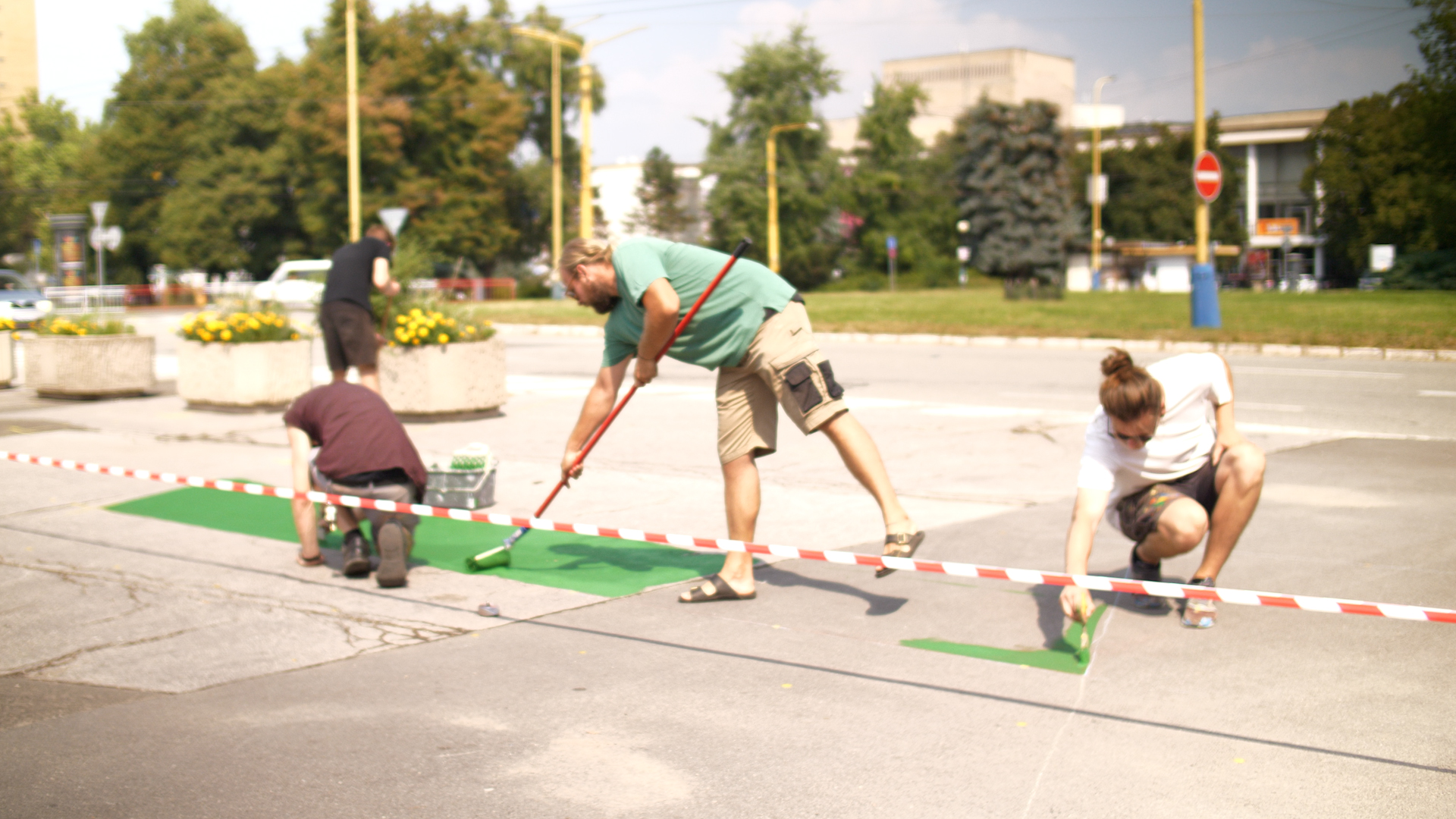Dielo – video – zachytáva proces vzniku umeleckého diela maľbou na asfalt na problematickej križovatke v Košiciach, ktoré slúži na zvýšenie bezpečnosti pre chodcov a motorové vozidlá ako dočasné riešenie a zároveň ako poukázanie na kreatívne funkčné riešenia pre zvýšenie udržateľnej mobility v mestách na pozadí klimatických zmien. Video je koncipované ako časozberná koláž realizácie a koláž výpovedí odborníčok, odborníkov, zastupiteľov mestských a iných organizácií zapojených do realizácie projektu od ideového až po technické riešenia.