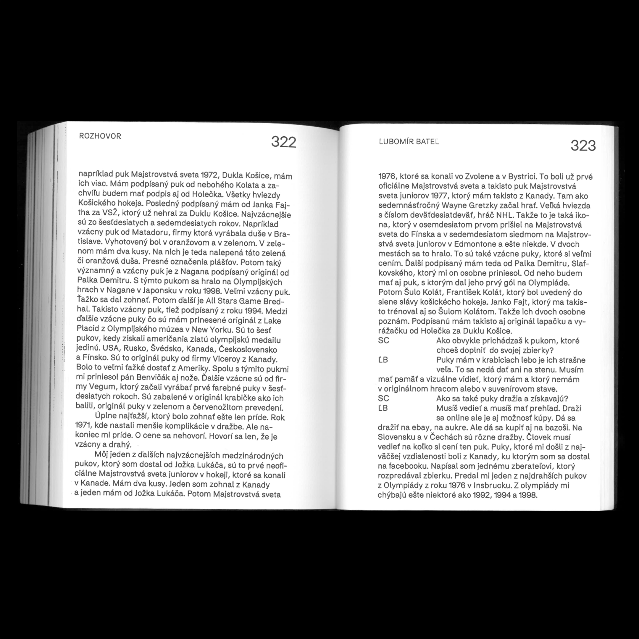 Publikácia archivuje a organizuje hokejové puky, ktoré zozbieral priateľ mojej tety z Košíc, Ľubomír Bateľ, z Majstrovstiev sveta v hokeji v rokoch 1933 — 2021. Poukazuje na puk ako na médium grafického dizajnu a skúma identitu hokeja každého ročníka. Víťazné ročníky ako Česko-Slovensko a Slovensko sú doplnené o komentáre z priameho prenosu zápasu. Puky sa v priebehu rokov menili z hľadiska dizajnu a emblémov, ktoré boli navrhnuté. Obsahuje aj rozhovor s majiteľom poskytnutých pukov. Celá publikácia je vysádzaná vlastným písmom PUQ vytvoreným špeciálne pre túto knihu. Hlavný charakter písma je založený na ťahoch v tvare hokejok.