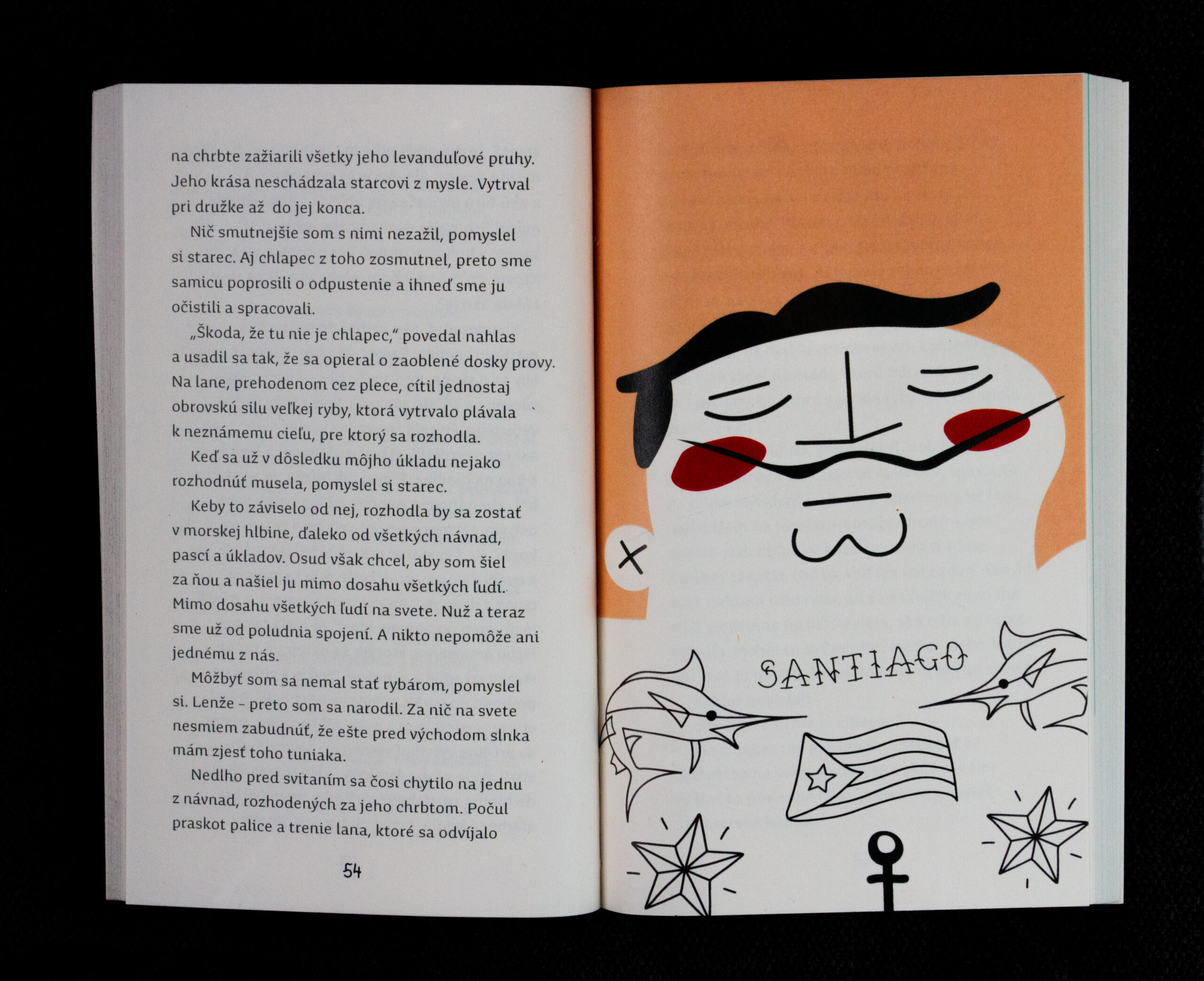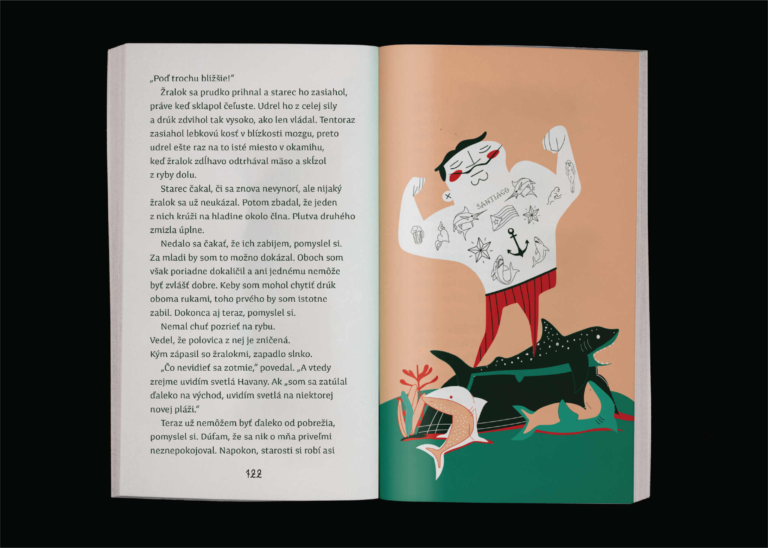 V dnešnej dobe stredoškoláci, teda aj mladí ľudia neradi čítajú knihy alebo vo všeobecnosti čítanie i keď sa stretávajú v škole s povinným čítaním. Tento fakt ovplyvňuje aj výber príbehu a grafické spracovanie. S týmto projektom som sa chcela sústrediť nato, ako vizuálne prilákať mladých ľudí k čítaniu. Zvolila som príbeh od Ernesta Hemingwaya – Starec a more – na stredných školách je to aj medzi povinným čítaním. Vizuál som chcela prispôsobiť k tomu čo je v dnešnej dobe trendy medzi mladými, preto má napríklad hlavná postava (Santiago) tetovanie. Tieto tetovania reprezentujú hlavné črty príbehu ako napr. – kubánska vlajka nám pokazuje nato, že tento príbeh sa odohráva na Kube. Ďalšie prvky ako žralok, marlin, lev sú tiež klučovými informáciami.