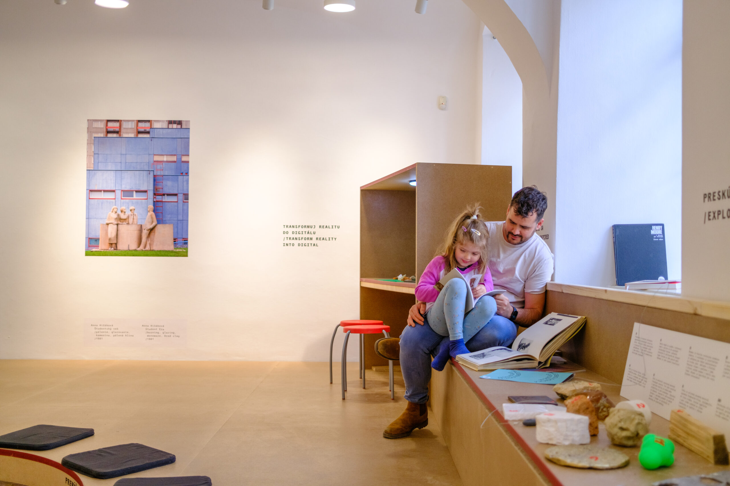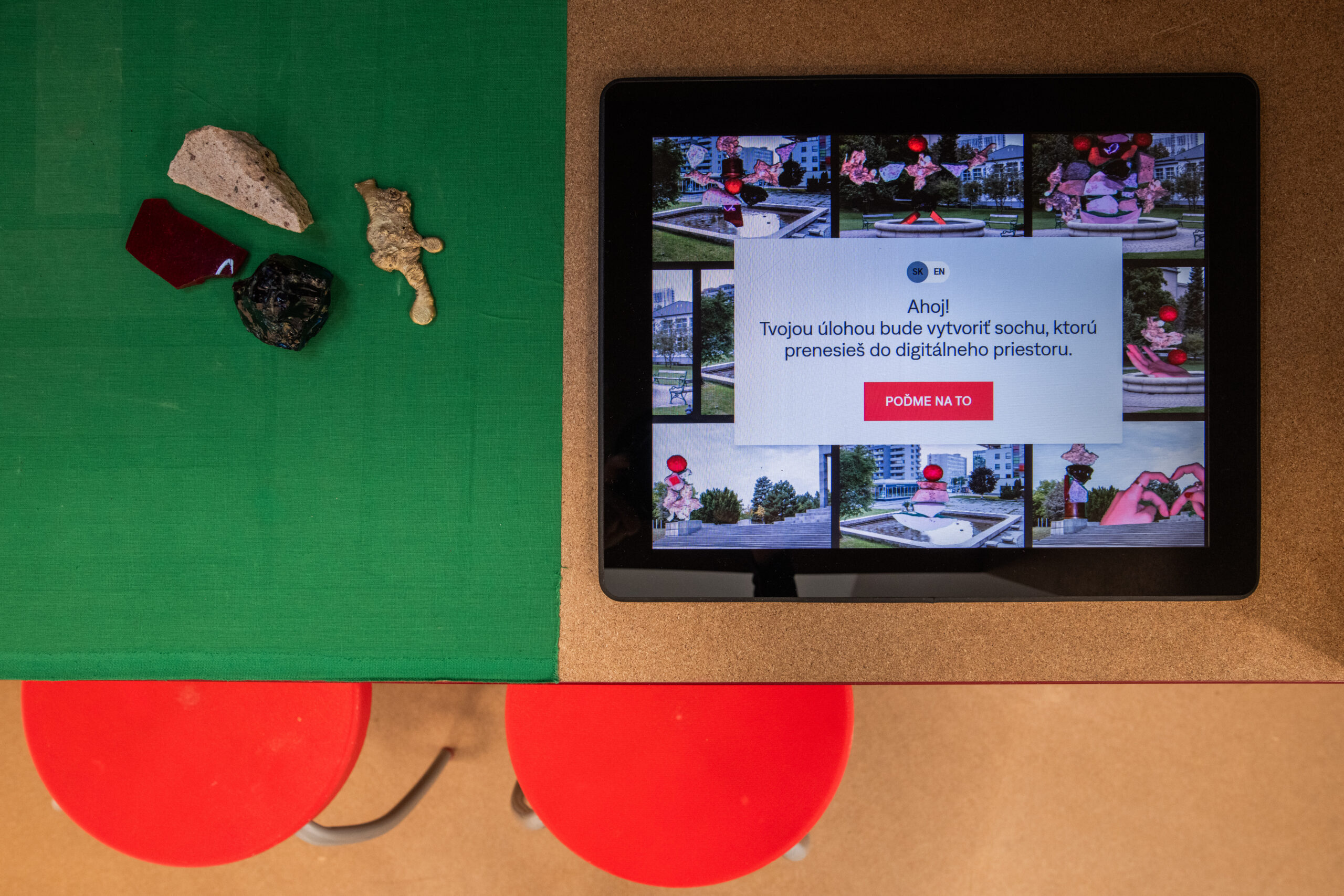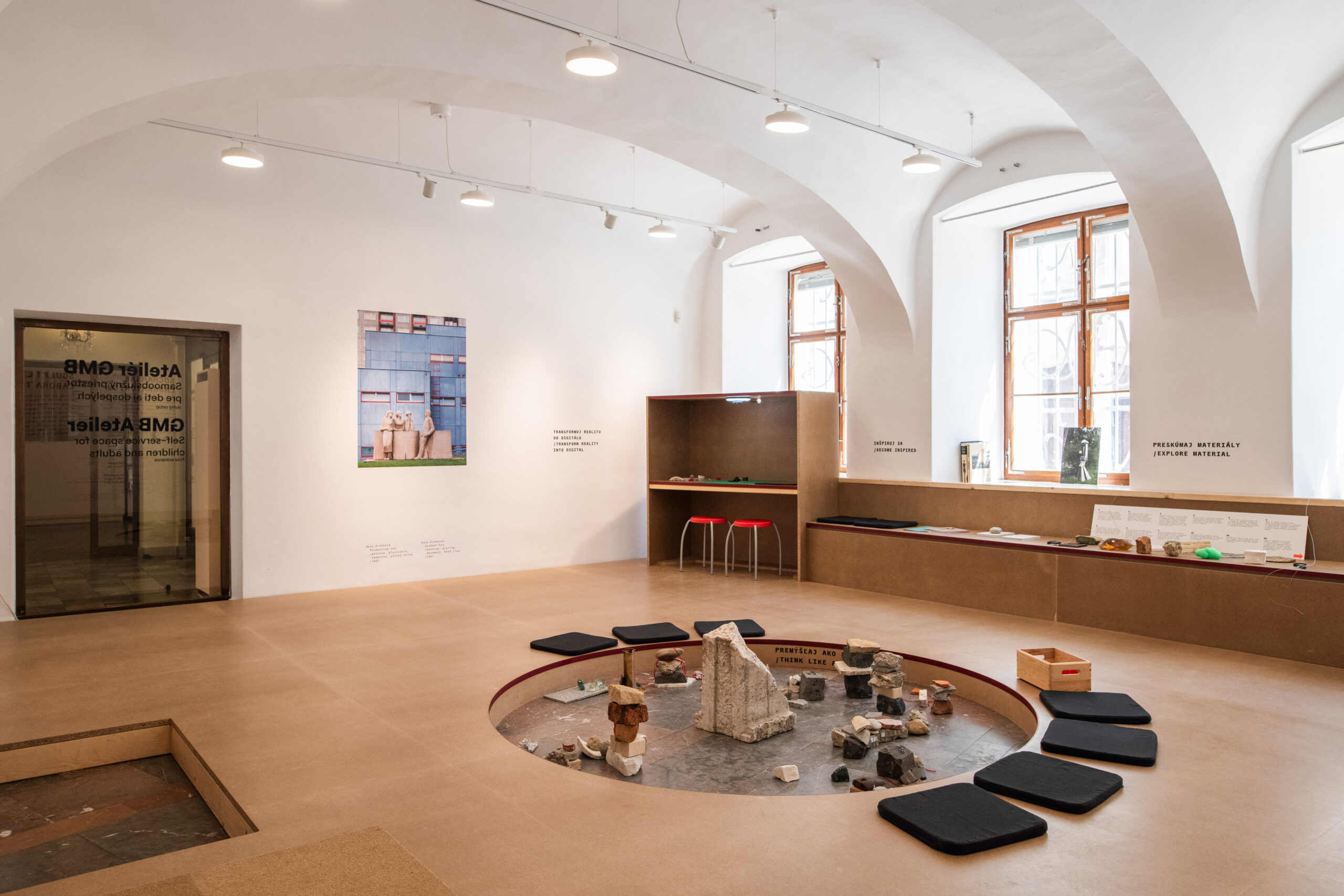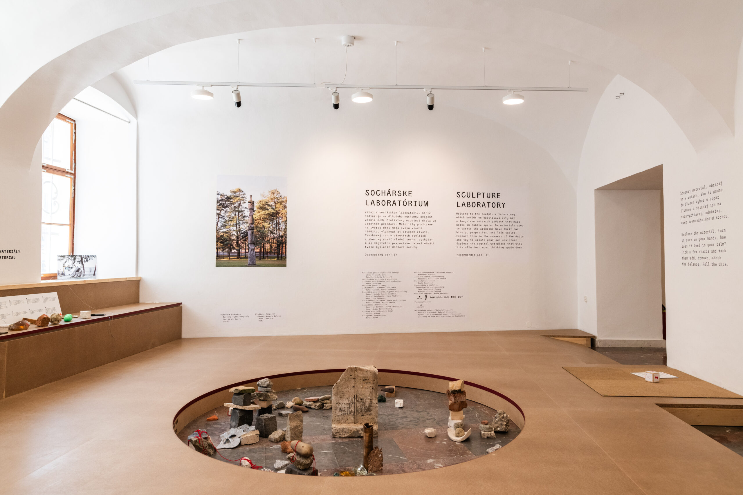 Sochárske laboratórium je interaktívny priestor pre deti aj dospelých. Koncepčne a tematicky nadväzuje na výskumný projekt Umenie mesta Bratislavy mapujúci diela vo verejnom priestore. Ateliér je rozdelený na viaceré stanovištia. Publikum vyzýva k prieskumu a spoznaniu vybraných sochárskych materiálov a podnecuje k tvorbe vlastných sôch pomocou rôznych inšpirácií. Kým v priereze podlahy tvoríme sochy skladaním úlomkov na seba, digitálne pracovisko umiestnené za stolom umožňuje vyskúšať tvorbu sochy v 2D zasadzujúc ju priamo do bratislavských vizuálnych reálií. Výslednú fotomontáž si môžeme poslať obratom na email a stane sa súčasťou databázy, ktorá je premietaná na obrazovku. Priestor je bezbariérový, dvojjazyčný (SK, EN), vstup doň je zdarma.