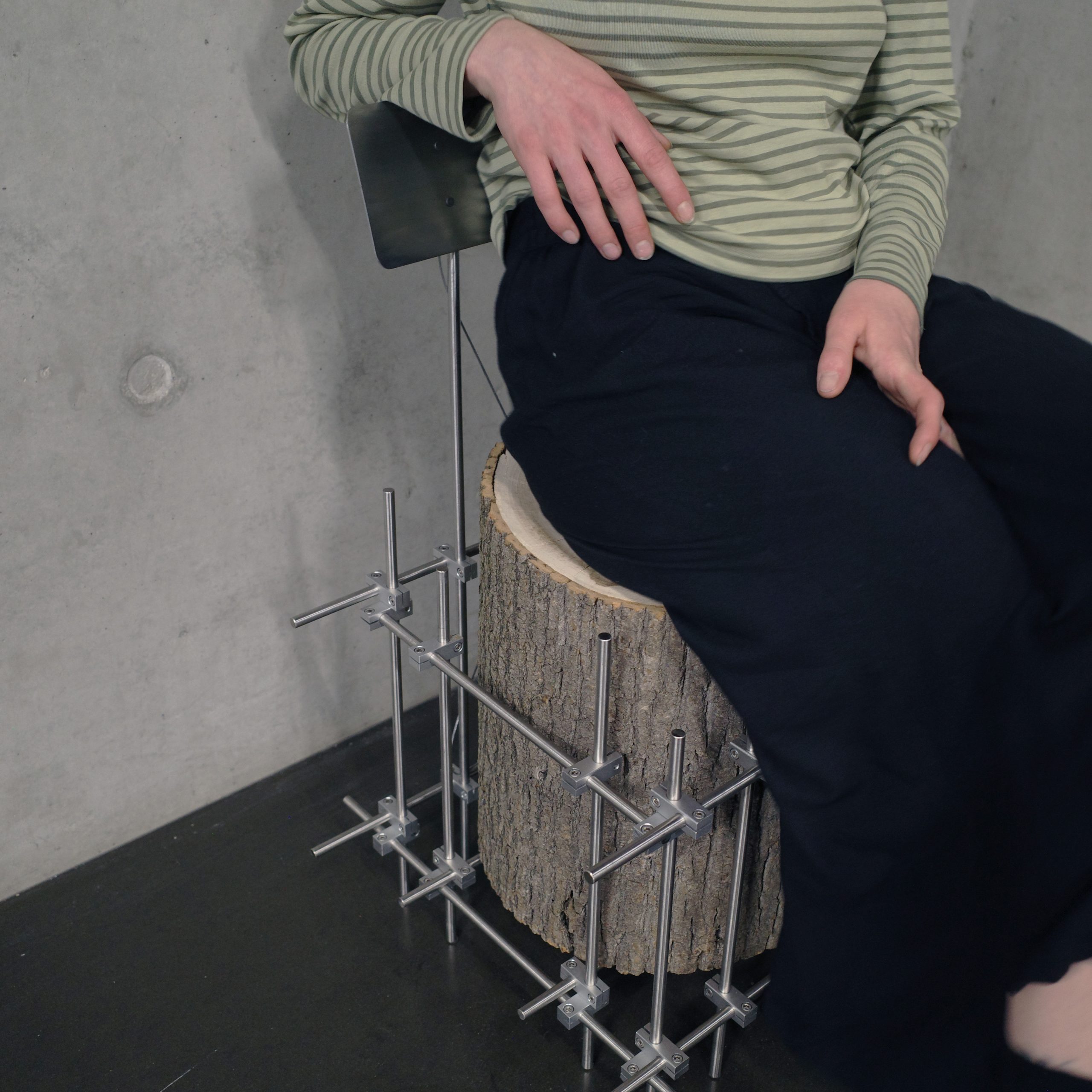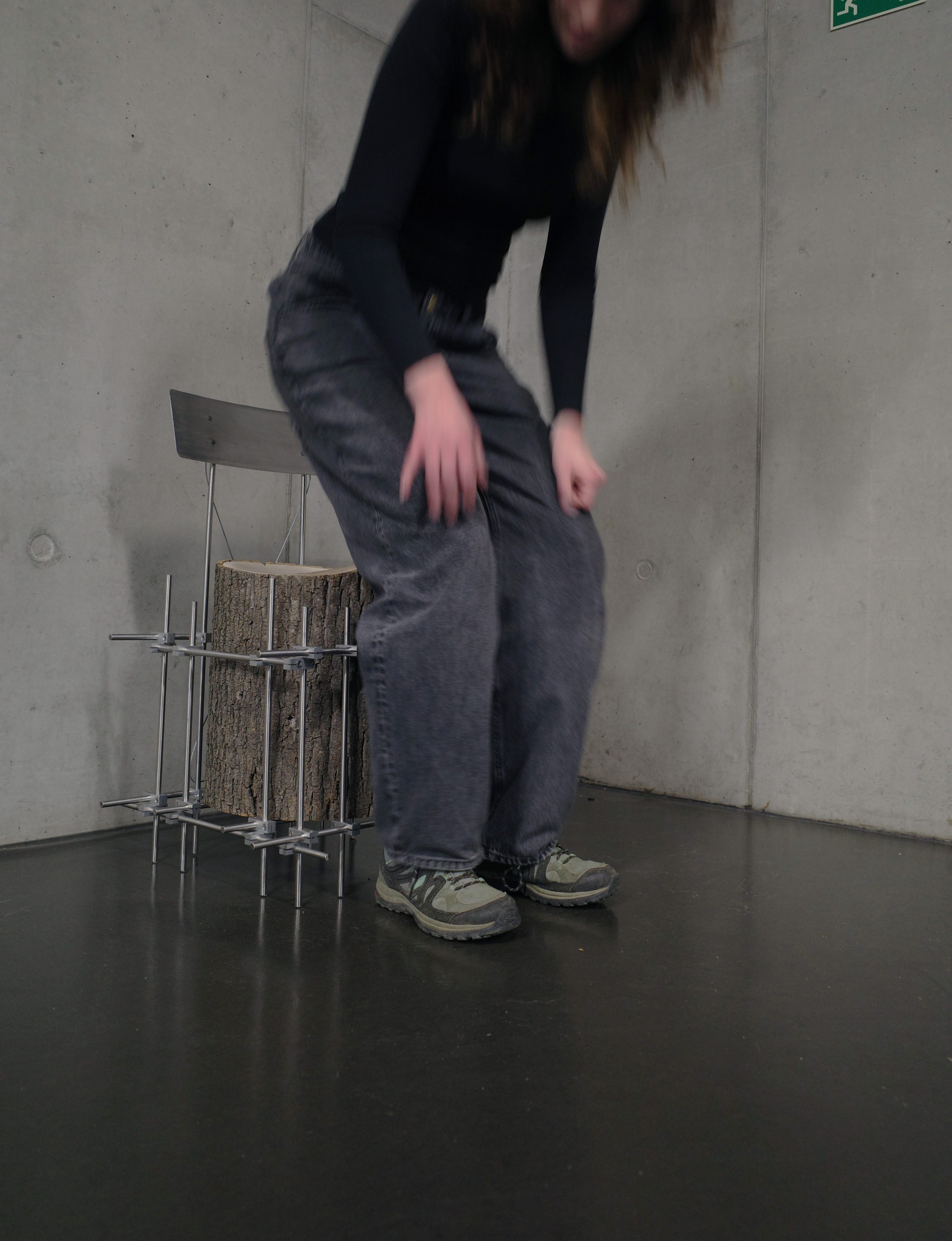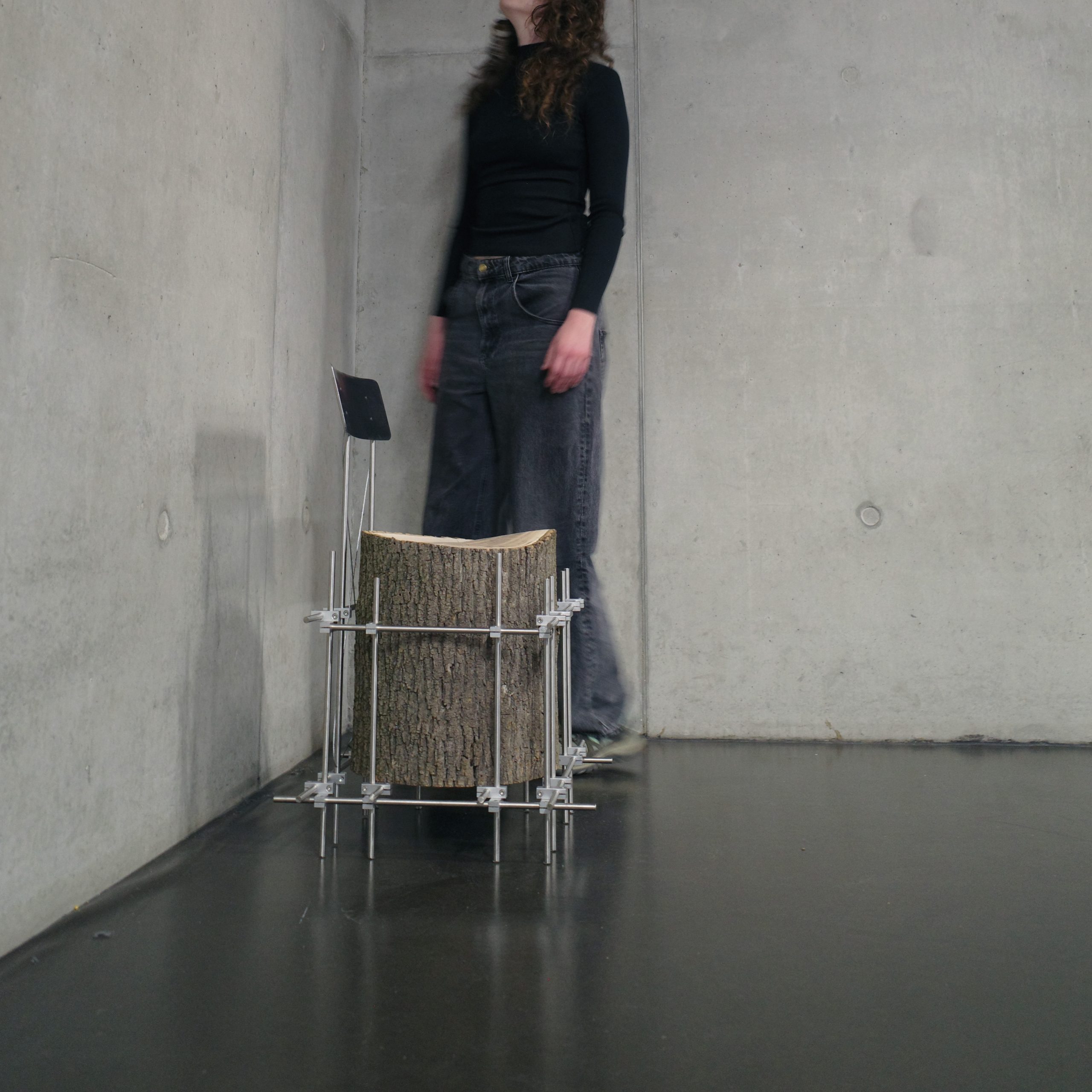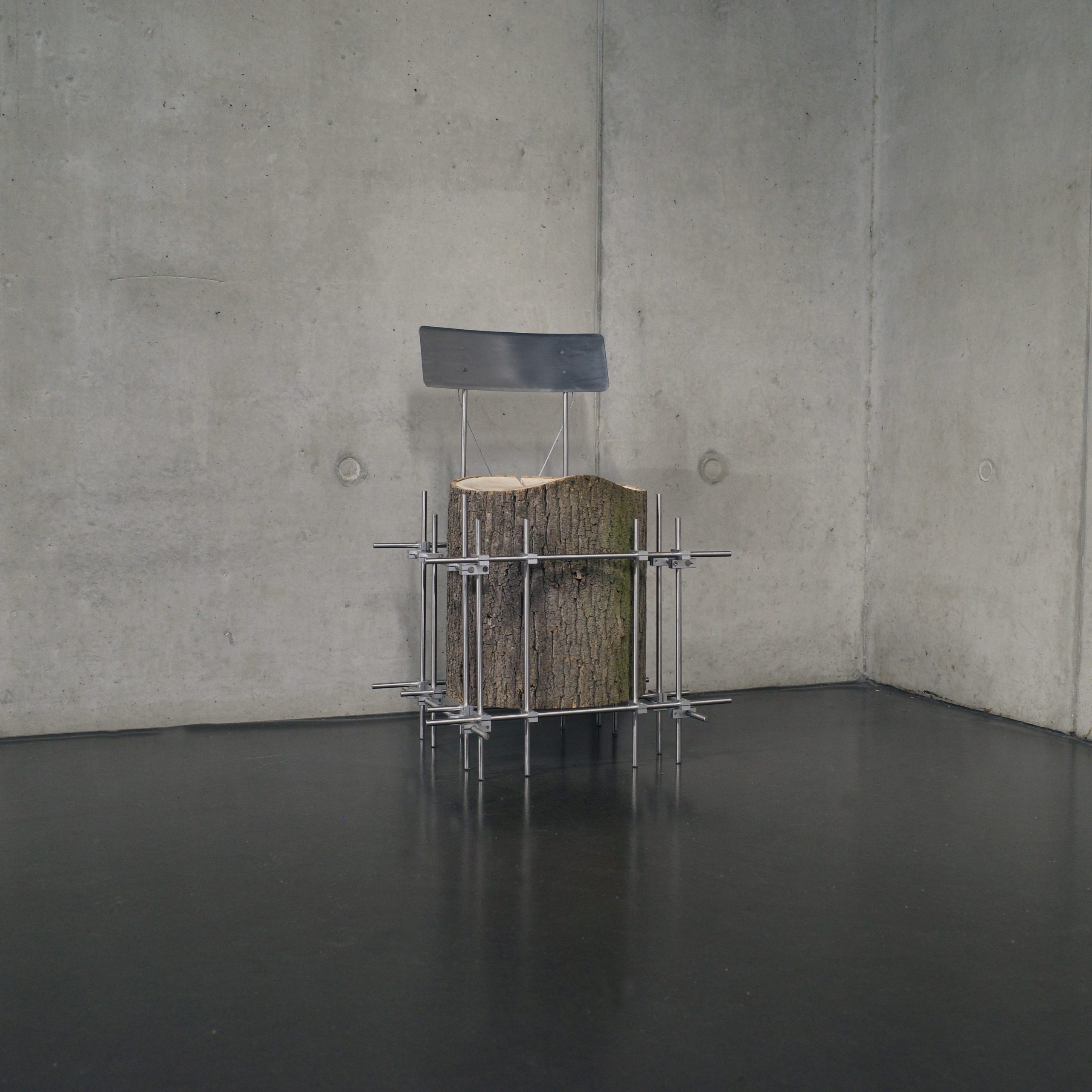 Tento projekt skúma vzťah človeka k prírode prostredníctvom objektu stoličky. Spája surový peň stromu so subtílnou oceľovou konštrukciou – kontrast medzi prírodou a technikou. Otváram otázky ekologickej zodpovednosti, vedomej spotreby a ľudskej túžby ovládnuť prírodu cez osobný zážitok odpílenia stromu, až po konečné spracovanie. Peň, vytrhnutý zo svojho prostredia, získava podobu artefaktu – fragmentu lesa vystaveného ako relikvia. Výsledná stolička tak nie je len funkčným objektom, ale vizuálnou a ideovou reflexiou súčasného stavu nášho vzťahu k materiálom a krajine.