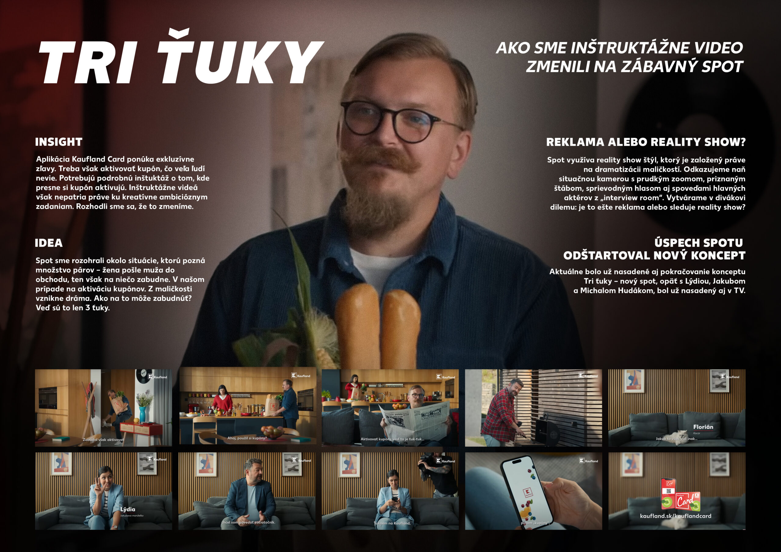 Aplikácia Kaufland Card ponúka exkluzívne zľavy. Treba však aktivovať kupón, čo veľa ľudí nevie. Potrebujú podrobnú inštuktáž o tom, kde presne si kupón aktivujú. Inštruktážne videá však nepatria práve ku kreatívne ambicióznym zadaniam. Rozhodli sme, že to zmeníme, a vytvoril isme zábavný spot v štýle reality show, do ktorej sme inštruktáž prirodzene zakomponovali do deja.