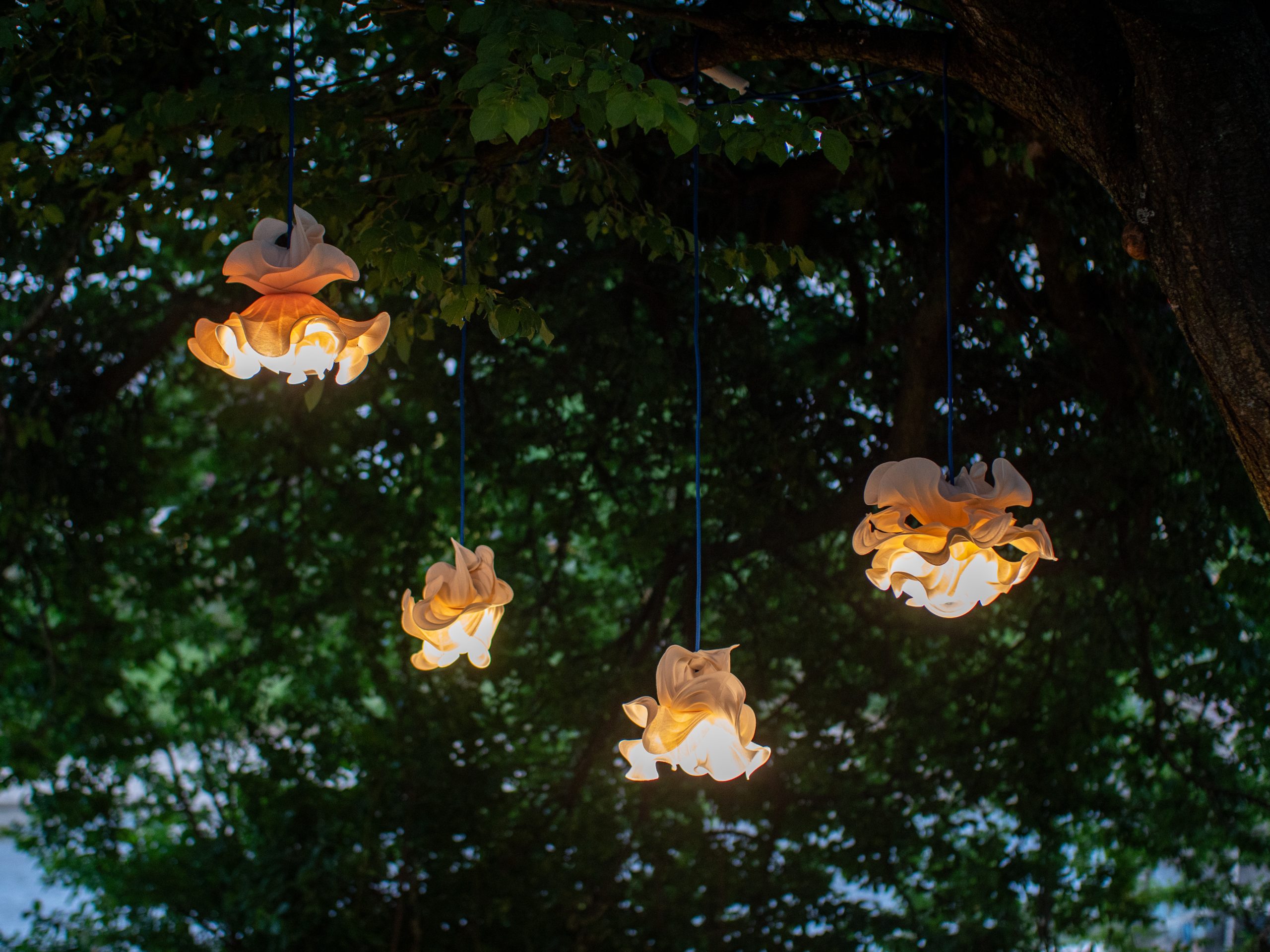 Kolekcia dekoračných svietidiel vytvorených experimentálnou technikou 3D tlače na napnutú textíliu, ktorou je možné dosiahnuť jedinečné organické štruktúry ako výsledok interakcie dvoch protichodných síl – tendencie textílie vrátiť sa po uvoľnení do pôvodného rozmeru a odporu, aký jej kladie pružný plast. Výsledný tvar je kombináciou riadeného dizajnového zásahu a prvku náhody vstupujúceho do výrobného procesu, čo zaručuje originalitu každého kusu.