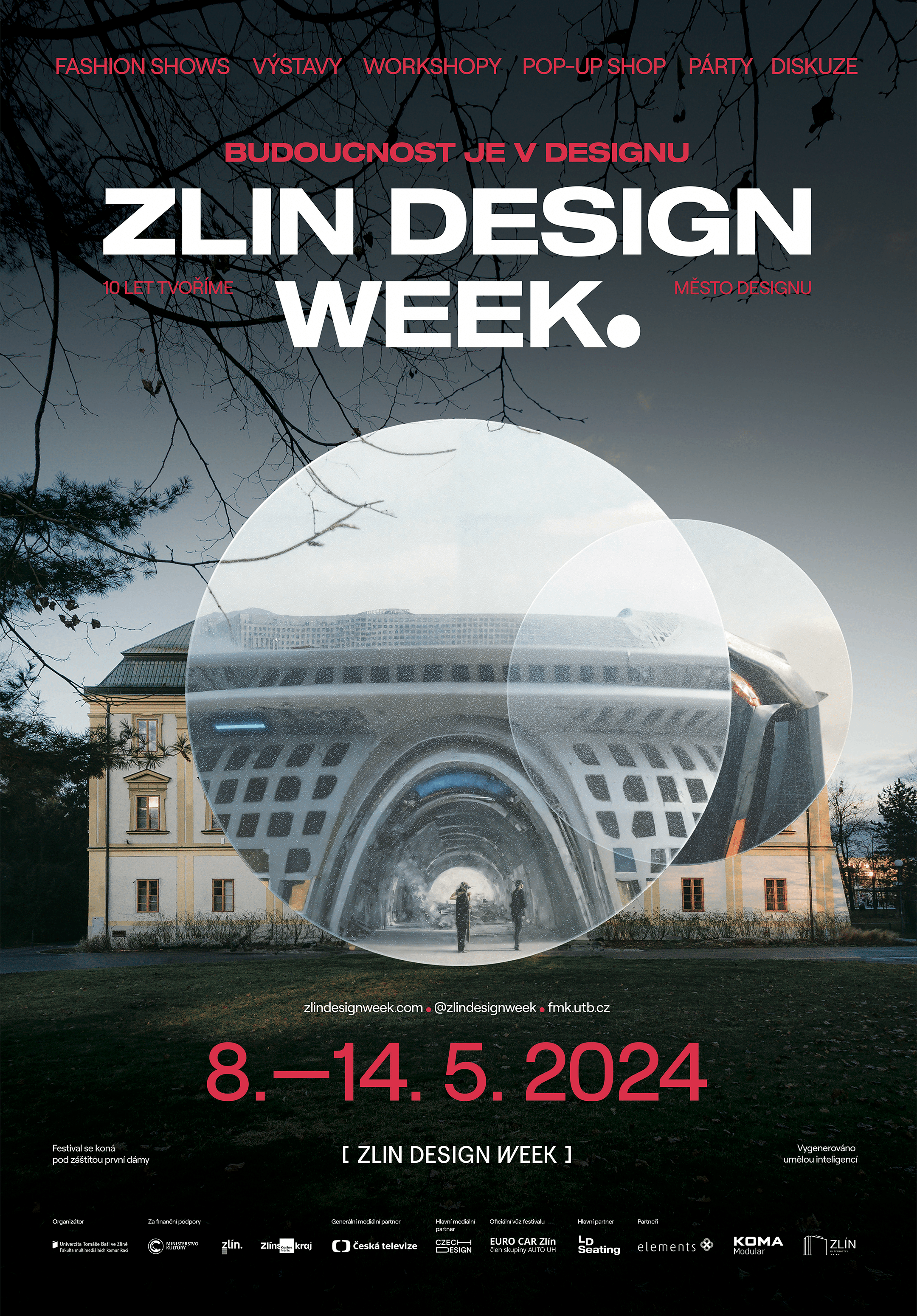 Vizuálna identita 10. ročníka Zlin Design Week s témou Budúcnosť je v dizajne. Desiaty ročník festivalu sa neohliada do minulosti – s rovnakou myšlienkou pristupuje aj jeho vizuálna identita. Sklenený kruh zobrazuje okno do neznámej, hmlistej budúcnosti a prvé okruhliny festivalu. Identita festivalu zahŕňa progresívne využitie generatívnej umelej inteligencie, ktorá sa používa v hlavných grafických výstupoch.
