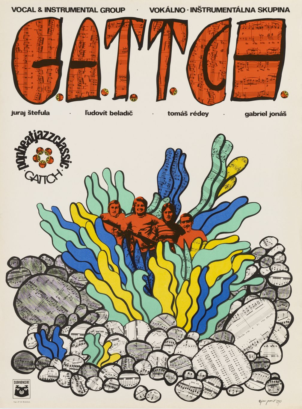 Plagát pozývajúci na koncert bigbítovej a artrockovej skupiny Gattch navrhol v roku 1973 Ivan Popovič, slovenský multiodborový umelec, ilustrátor, grafický dizajnér, animátor, režisér a spisovateľ. Vo vizuáli majstrovsky skombinoval vlastnú ilustráciu, fotografickú reprodukciu a typografiu v štýle súdobých avantgárd. Ide o jednu z jeho sporadických prác pre umeleckú propagačnú agentúru Slovkoncert Bratislava .