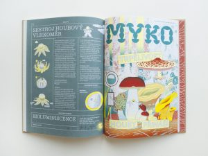 Sú vynaliezavé, inteligentné, komunikujú a spájajú sa navzájom na obrovské vzdialenosti, rozkladajú sa a budujú, miznú a znovu sa objavujú, prispôsobujú sa a transformujú, prežívajú bez ničoho, bránia sa nepriateľovi mierovými spôsobmi, liečia seba aj iných a sú krásne, rozmanité a tajomné. Huby! Časopis, ktorý zostavujú samotné huby, aby podávali správy o svojom svete – takto zábavne, ale absolútne pravdivo poňal Jiří Dvořák svoje rozprávanie o tajomnej ríši húb. Jeho exkurzie do podzemia, pravekého hubového sveta i horúcej súčasnosti dopĺňajú vtipné, výstižné a neónovo farebné ilustrácie Daniely Olejníkovej. Graficky je knižka koncipovaná ako desať zviazaných dielov 8-stranových časopisov MYKO a text je riešený ako klasická novinová sadzba v troch stĺpcoch. Autorom knižného dizajnu je Pavol Bálik.