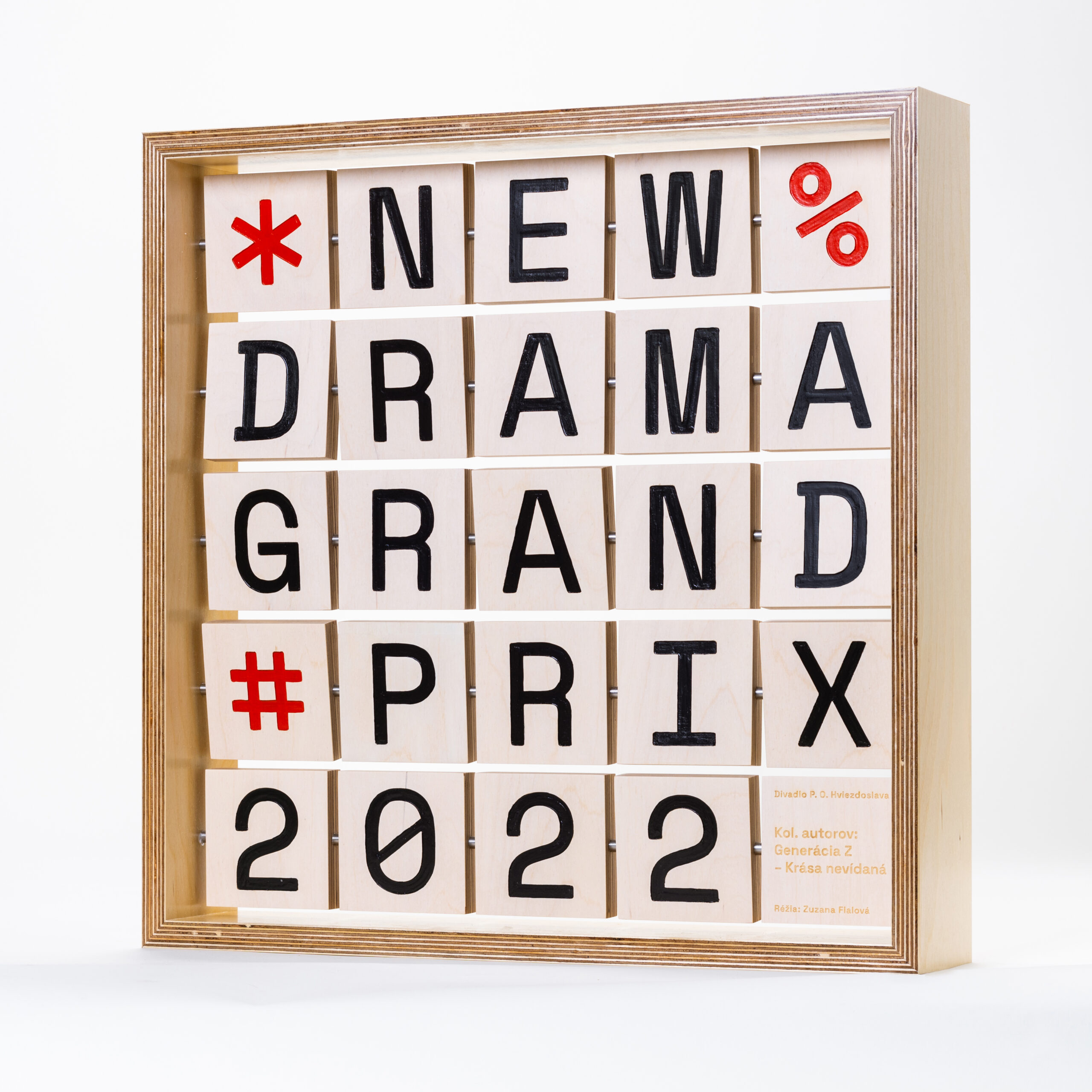 Identita festivalu Nová dráma 2022 reflektuje fenomén tzv. cancel culture. Téma festivalu sa zameriava na nenávistné prejavy vo verejnom diskurze, slobodu prejavu a nárast ideologického extrémizmu. Preto písmo, ako hlavný prvok kampane, využíva priamu cenzúru slov (tzv. bleep censor, s online nenávistnými znakmi $&#%!*). Farebnosť, primárne daná festivalovou sekciou Focus Rakúsko, zároveň odráža motív nenávistných prejavov, ktorý získava na sile výrazu a vyniká vo vizuálnom smogu ulice a online priestore. Okrem tradičných aplikácií sa vyrábalo aj hlavné ocenenie, vizualitou naviazané na identitu ročníka. Formálny základ je odvodený od hračiek na detskom ihrisku, kde sa otáčaním prvkov kombinujú rôzne obrázky, v tomto prípade názov ocenenia a hate speech symboly. Víťaz sa takto môže zahrať na reálneho cenzora.