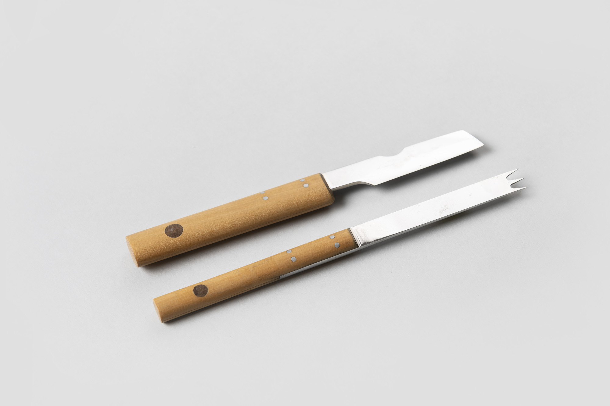 V Múzeu dizajnu sa nachádza príbor s originálnym autorským tvarovým riešením vidličky a noža. Dôraz je kladený na prirodzenú krásu materiálu.