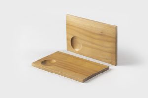 V Múzeu dizajnu sa nachádza dvojica minimalistických servírovacích dosiek s vizuálne aj hapticky atraktívnym tvarovým riešením, postaveným na kontraste rovnej plochy a konkávnej misky. Dôraz je kladený na prirodzenú krásu materiálu.