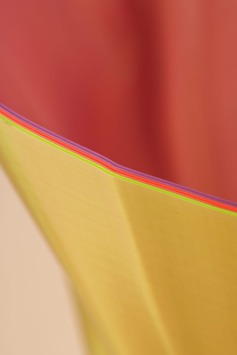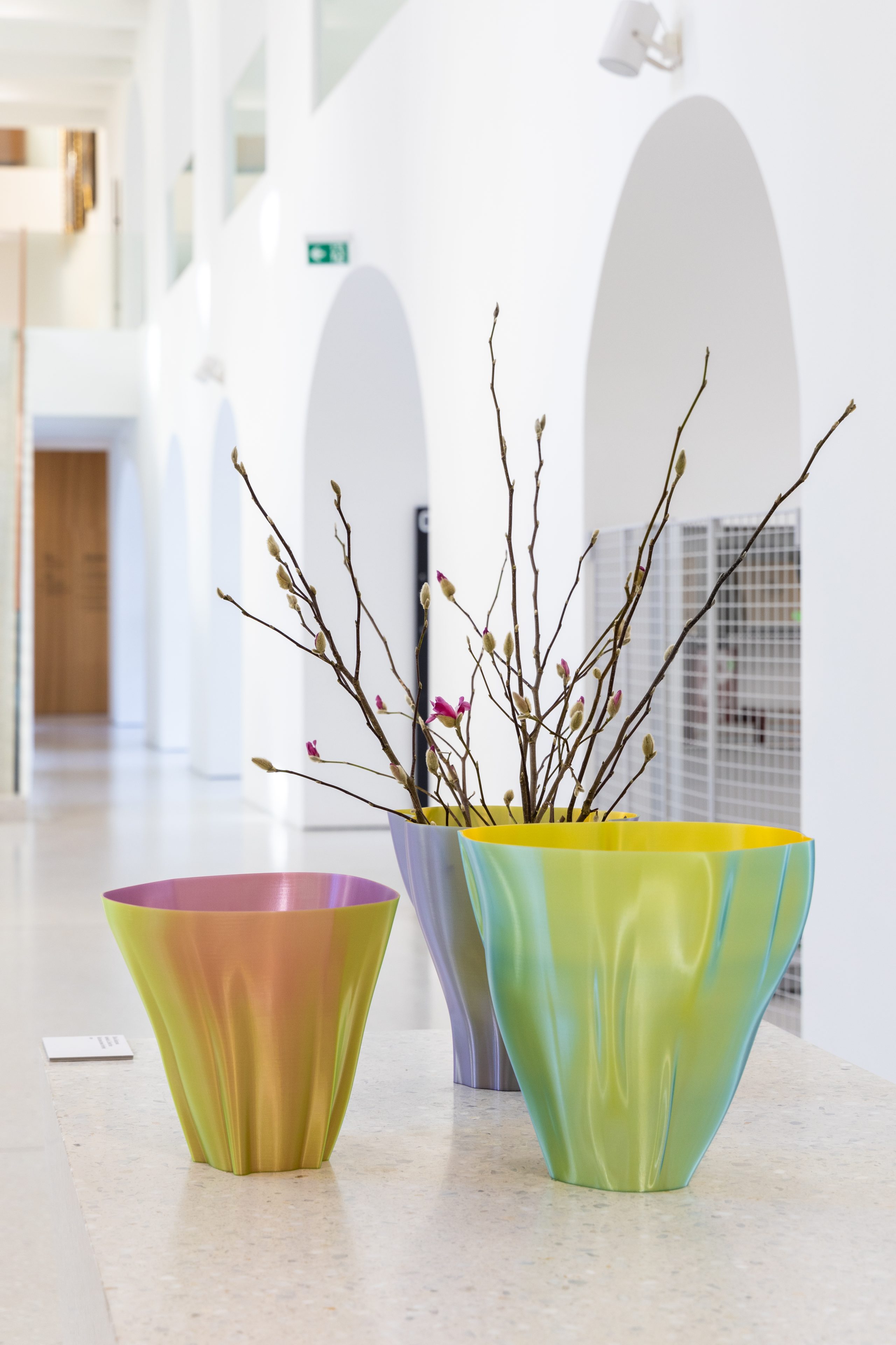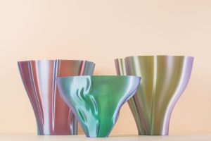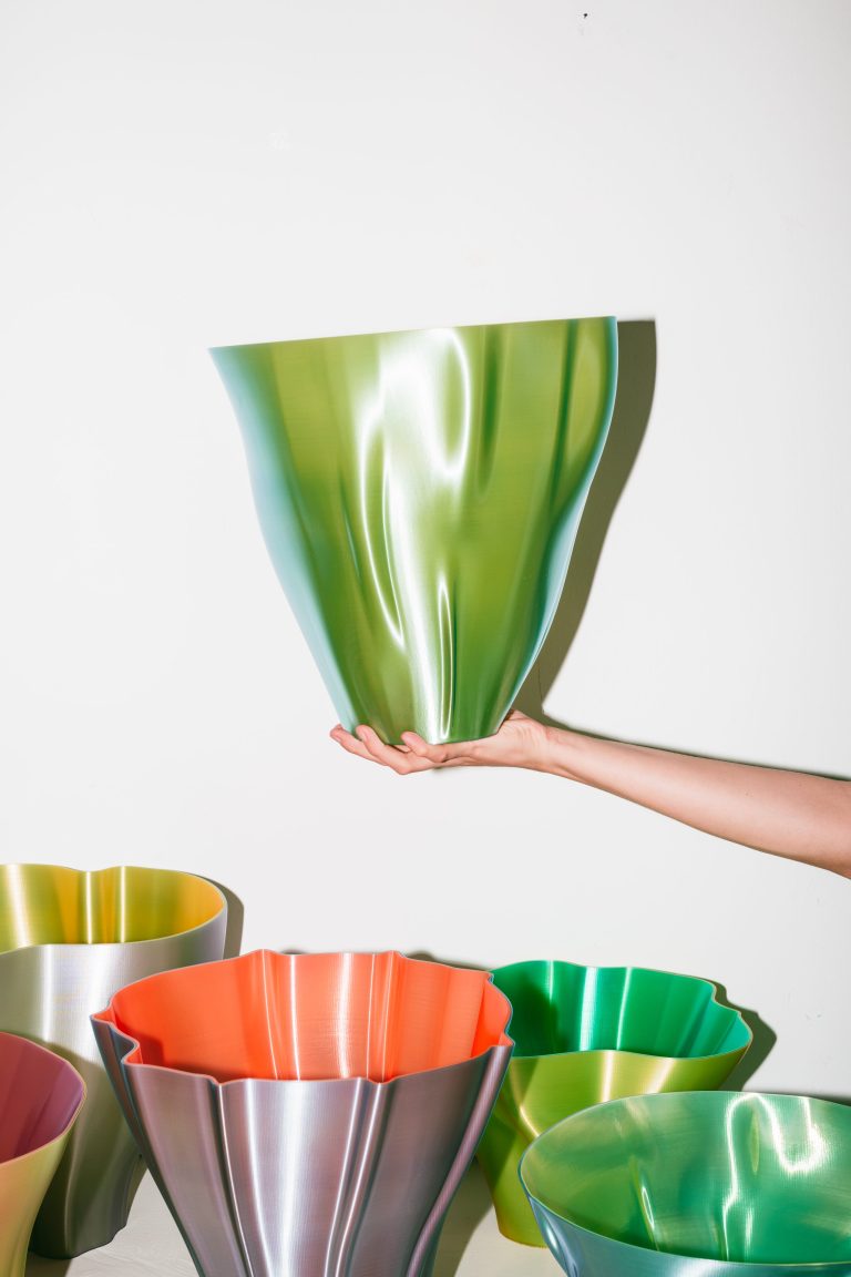 In my practice, I have long focused on advancing digital craftsmanship through 3D printing, pushing the boundaries of visual expression and exploring innovative production methods. In the Rainbow Bowls Limited collection, I use a technique of assembling separately 3D-printed, translucent PLA layers into the resulting object. This method creates a visual effect in which colors blend into gradients that shift with the viewing angle and lighting conditions. Each bowl is digitally modeled from hand-drawn sketches, ensuring that each object is unique. The process is intentionally simple, relying on standard materials and widely accessible 3D printers, and it results in an expanding collection of rainbow bowls, each a unique collector’s piece that can also serve as a vase.