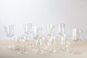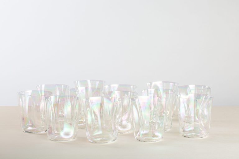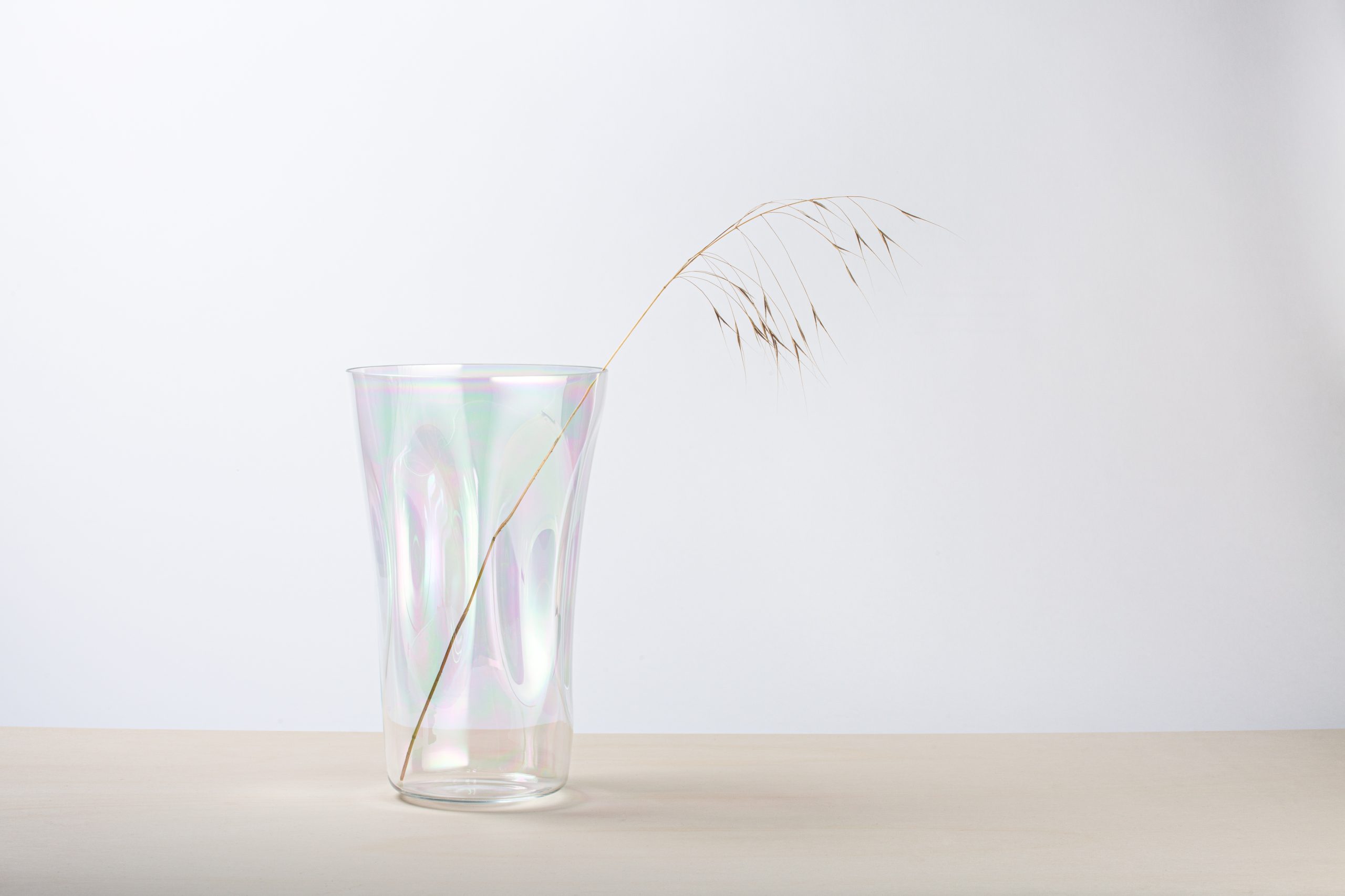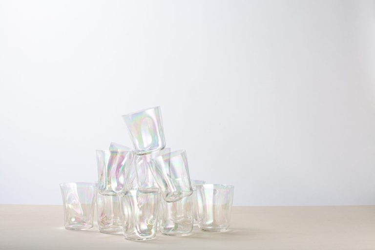 The Soap Bubble Collection is designed for hand production and is hand-decorated using an iridizing glass-painting technique discovered in the 19th century at the glassworks in Zlatno, in the Novohrad region in the south of what is now central Slovakia. It symbolizes the local history of glass, the craftsmanship of local glassmakers, and a tradition of technological innovation. The collection is made in the so-called muslin design. The author designed this project for the ILLOLA design platform.