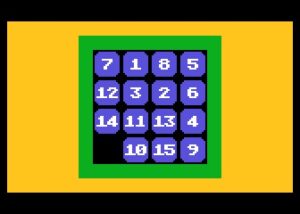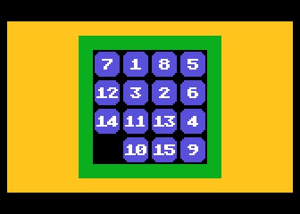 Logická hra, ktorá vychádza z matematického hlavolamu Loydova 15-tka. Cieľom hry je v čo najkratšom čase usporiadať kamene podľa čísiel, a to tak, že v hornom riadku budú kamene s číslami 1,2,3,4 atď. V spodnom riadku budú kamene s číslami 13,14,15, a v pravom dolnom rohu bude voľné miesto. Hra sa štartuje pomocou FIRE (tlačítko na joysticku). Kamene sa presúvajú vždy do voľného miesta pohybom joysticku zľava, sprava, zhora alebo zdola. V momente, keď budú všetky kamene na svojom mieste hra končí a čas sa zastaví. Po ukončení hry sa vypíše najlepší čas a čas dosiahnutý v poslednej hre.