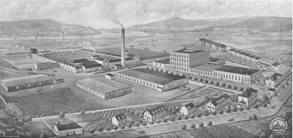 Francúzski podnikatelia Paul a Jean Tiberghienovci pochádzali zo severného Francúzska, kde vlastnili niekoľko textilných tovární. Roku 1907 založili v Trenčíne firmu Tiberghien a synovia. Firma otvorila v roku 1910 vlastnú pradiareň ale materiál na výrobu sa naďalej dovážal. Látky sa tkali podľa francúzskych návrhov a tamojších technických predpisov. V rokoch prvej svetovej vojny bola výroba pozastavená, priestory fabriky slúžili ako vojenská nemocnica a dôstojnícka škola. Roku 1918 sa postupne začala prevádzka obnovovať.