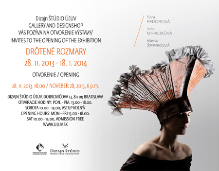 Jedinečné postupy slovenského drotárstva v súčasnom šate možno spoznať od štvrtka 28. novembra v bratislavskom Dizajn štúdiu ÚĽUV. Ústredie ľudovej umeleckej výroby (ÚĽUV) vo svojom priestore na Dobrovičovej ulici 13 predstaví práce mladých výtvarníčok Silvie Fedorovej, Ivety Mihálikovej a Blanky Šperkovej. http://www.uluv.sk/
