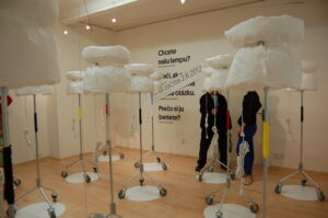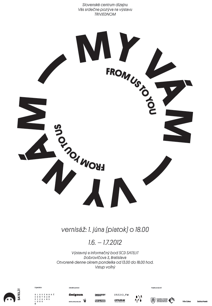 Výstava MY VÁM – VY NÁM predstaví novú kolekciu autoriek Sylvie Jokelovej, Ľubice Segečovej a Silvie Lovasovej. Dizajnérsky ateliér Trivjednom, kde spolu tvoria Sylvia Jokelová ( dizajnérka a šperkárka), Ľubica Segečová (grafická dizajnérka), Silvia Lovasová (dizajnérka), vznikol minulý rok. Autorky sa rozhodli vytvoriť si vlastný profesionálny priestor, kde môžu pracovať na spoločných aj individuálnych projektoch. Dizajn predstavuje pre ne aj priestor na výskum, v ktorom sa zaoberajú pozitívnymi a negatívnymi špecifikami nášho prostredia. Aktuálne prichádzajú do galérie Satelit s novou kolekciou. Je to kolekcia dizajnov, ktorá vznikla z finančnej podpory Ministerstva kultúry SR. Nejde však konkrétne o produkty, tie sa v tomto prípade stávajú nástrojom interaktívneho spoločenského experimentu. Výstava je nevšedná tým, že dôležitejšie ako vystavené dizajny sú otázky autoriek a zaujímavá ponuka pre návštevníka. Názvom výstavy naznačujú, že ich zaujíma návštevník galérie. Naznačujú, že mu niečo prinášajú a zároveň aj niečo od neho očakávajú. Galéria sa tak má stať hlavne provokatívnym pozadím pre rozohranie spoločnej hry, ktorej pravidlá zatiaľ neprezrádzajú.